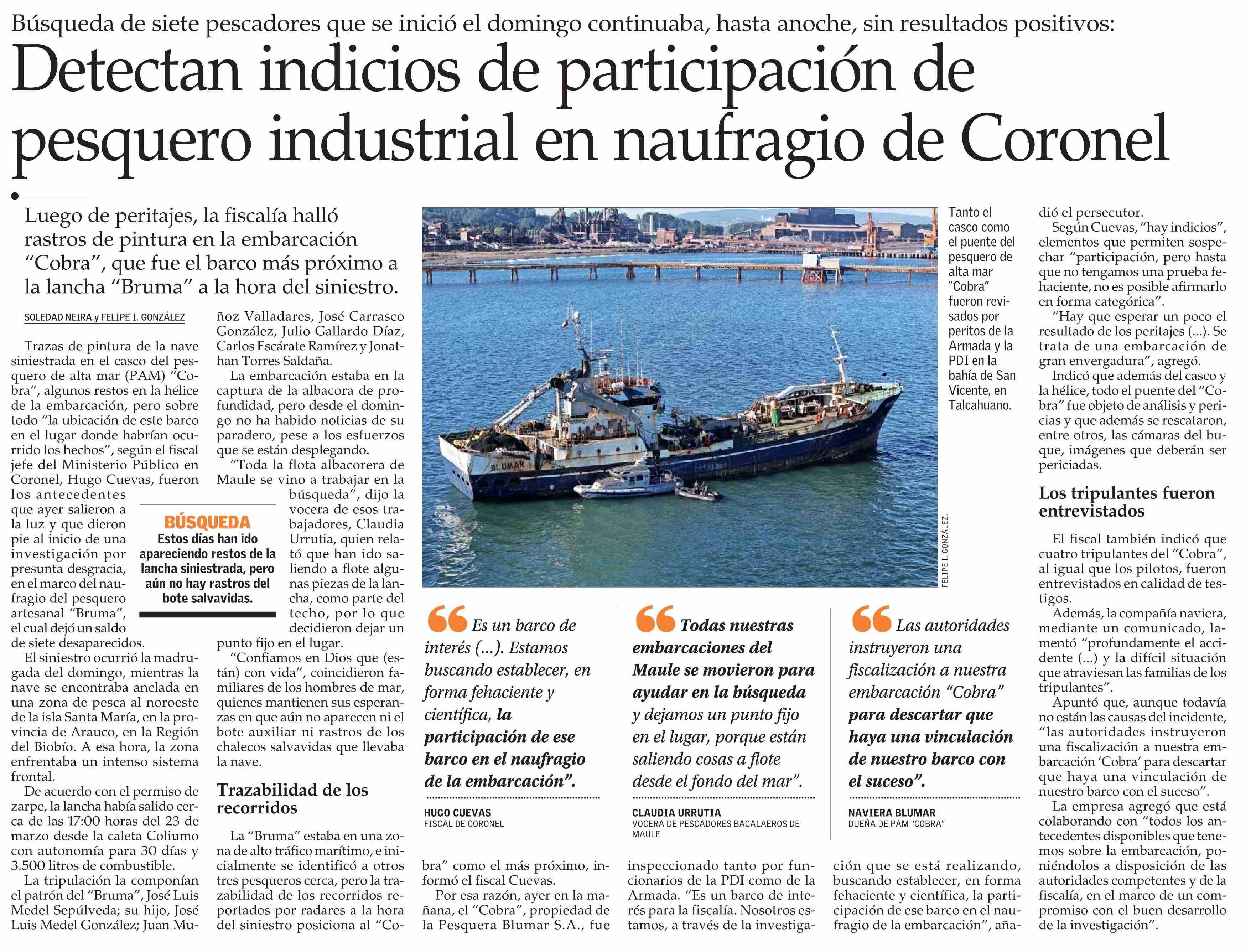 | Título: | Detectan indicios de participación de pesquero industrial en naufragio de Coronel |