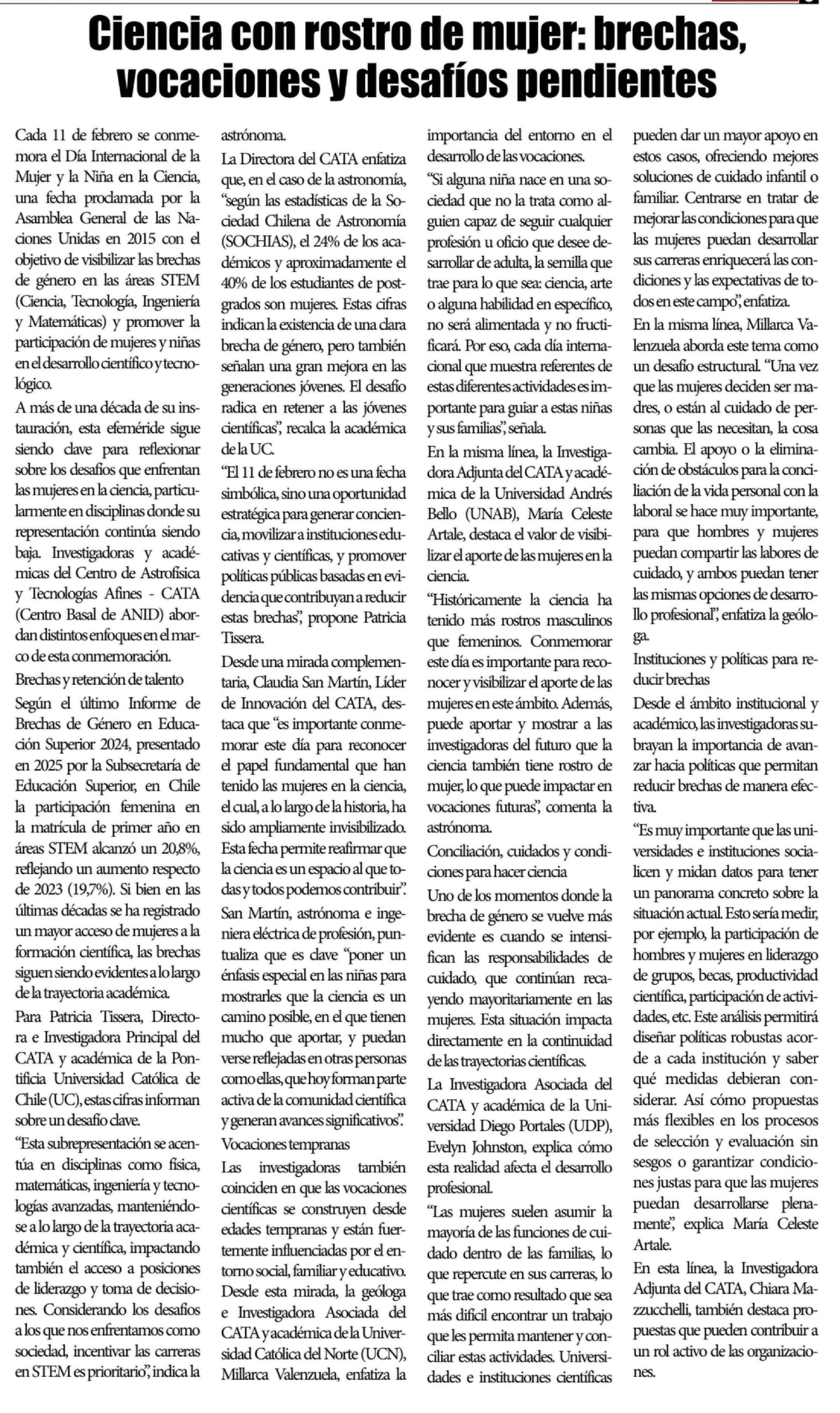 Ciencia con rostro de mujer: brechas, vocaciones y desafíos pendientes 12-02-2026 El Lector |