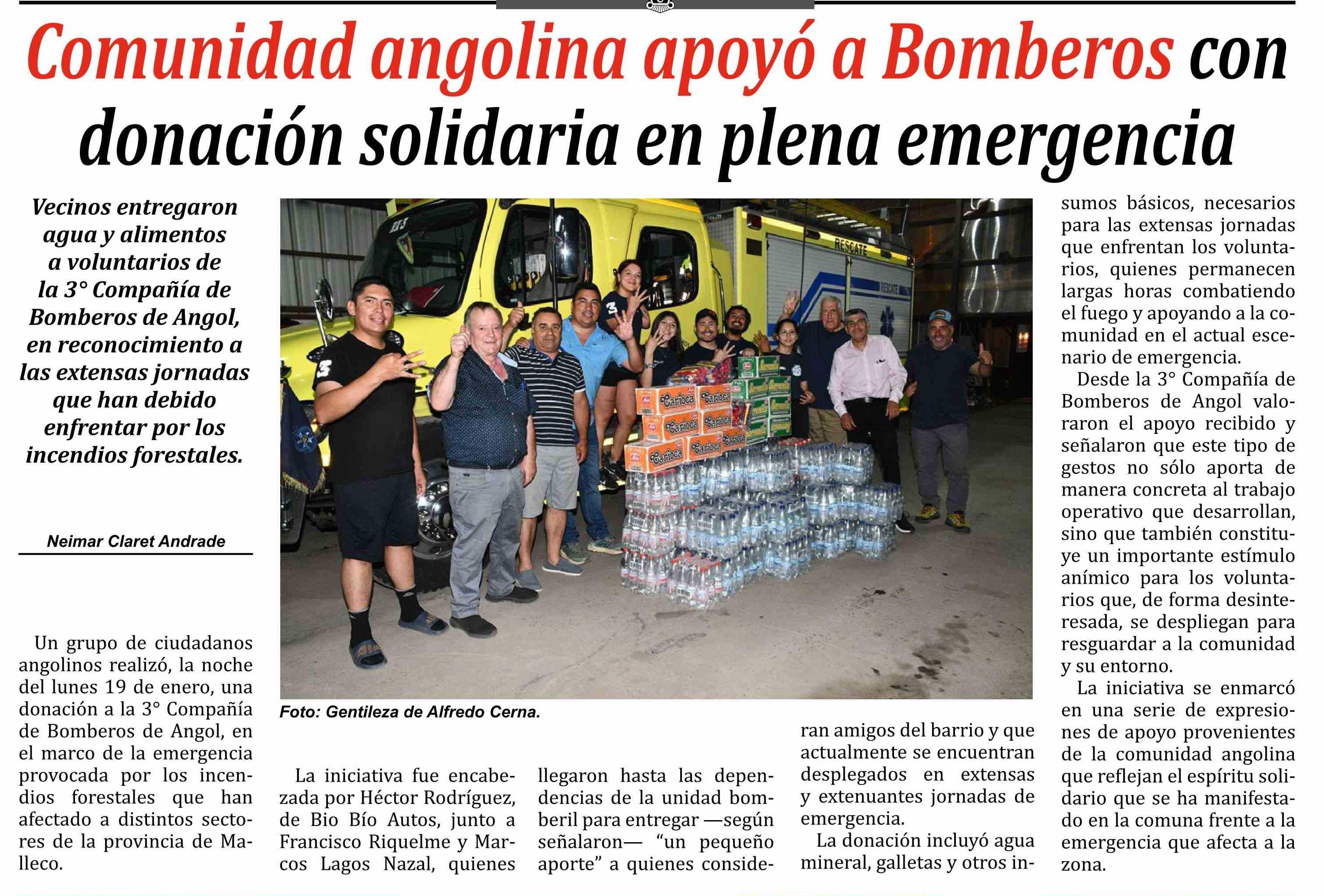 Comunidad angolina apoyó a Bomberos con donación solidaria en plena emergencia 21-01-2026 Las Noticias |