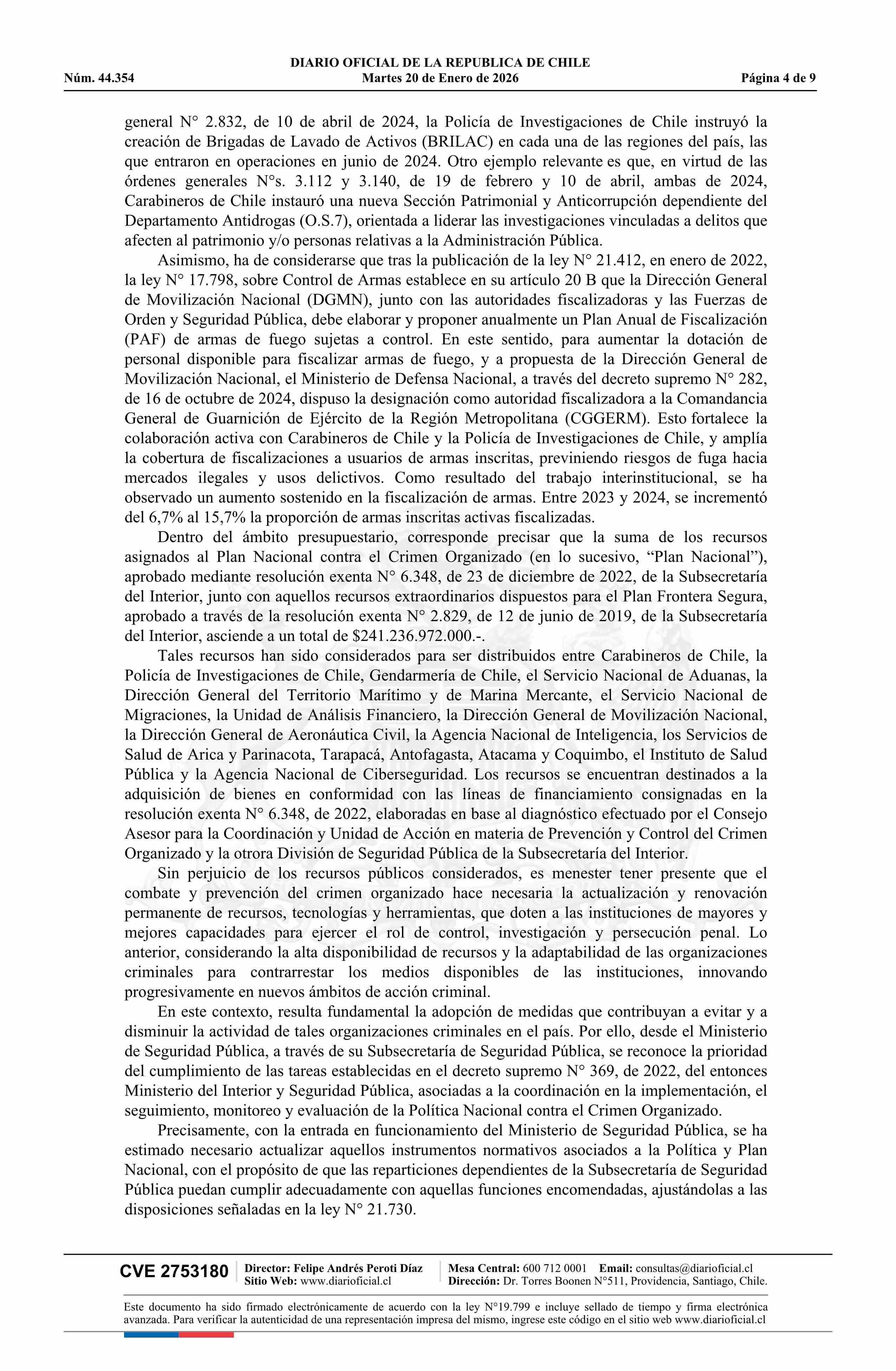 Título: Resolución exenta número 2.530, de 2025.- Deja sin efecto resolución N° 6.348 exenta, de 2022, de la Subsecretaría del Interior, y aprueba Plan Nacional contra el Crimen Organizado