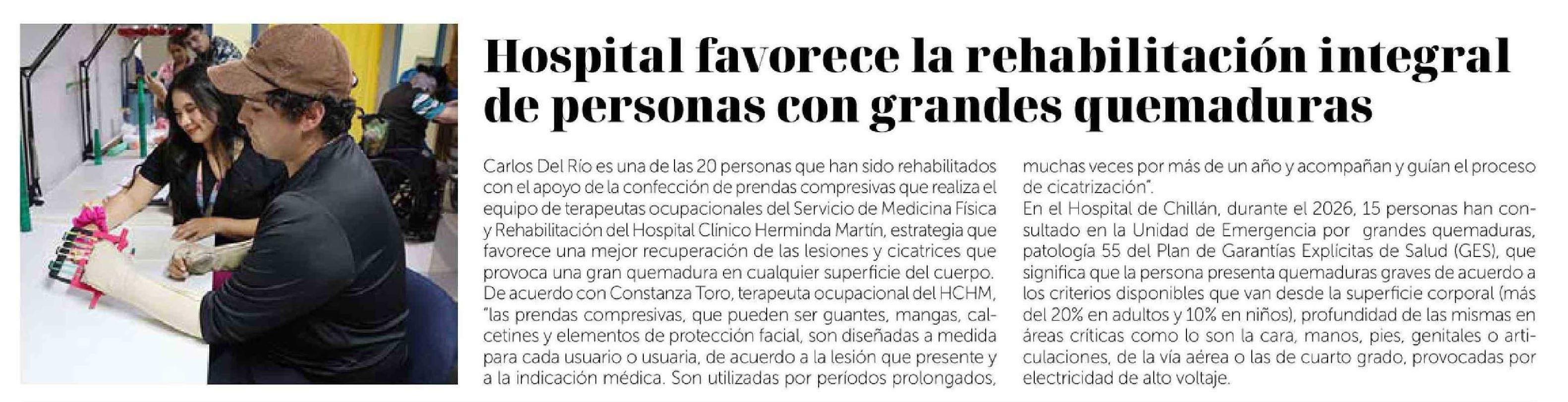 Título: Hospital favorece la rehabilitación integral de personas con grandes quemaduras