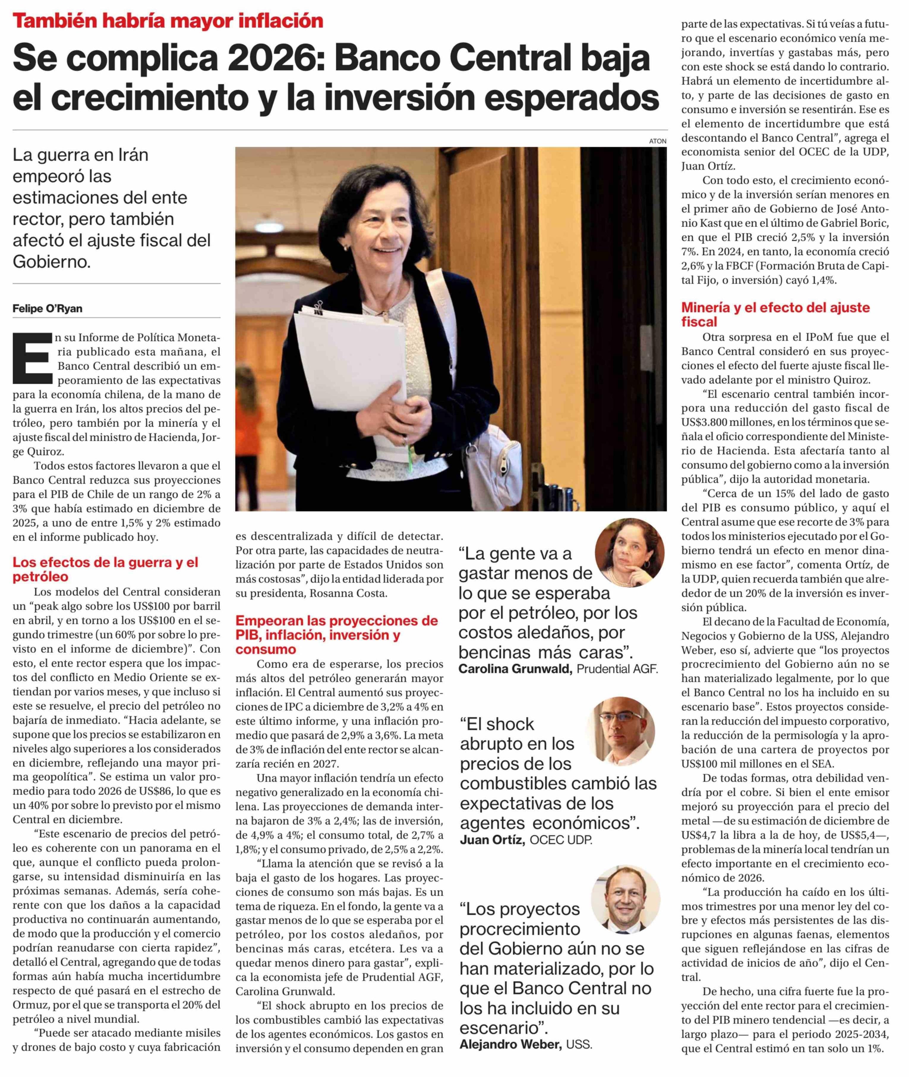 Título: Se complica 2026: Banco Central baja el crecimiento y la inversión esperados