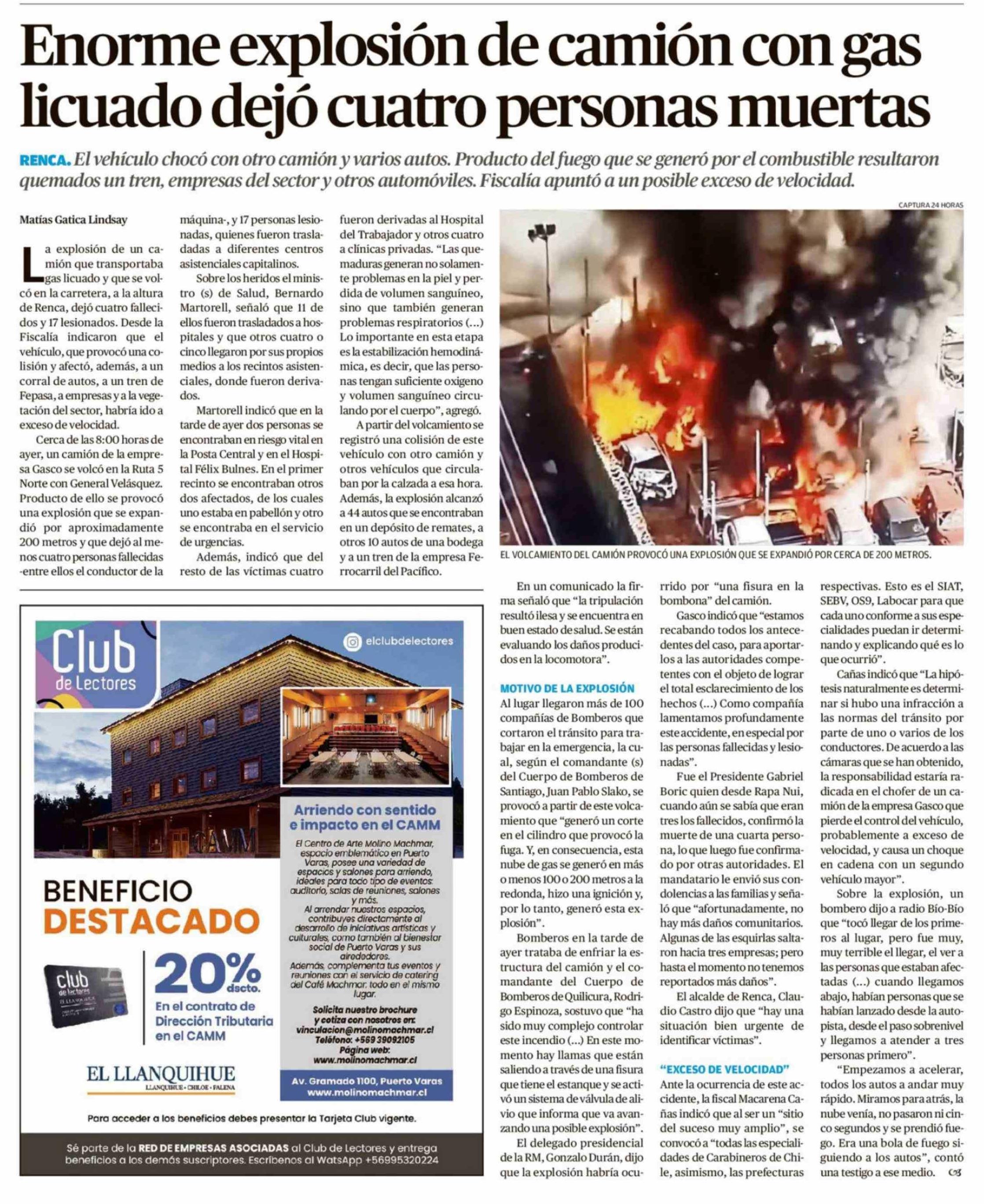 Enorme explosión de camión con gas licuado dejó cuatro personas muertas 20-02-2026 El Llanquihue |