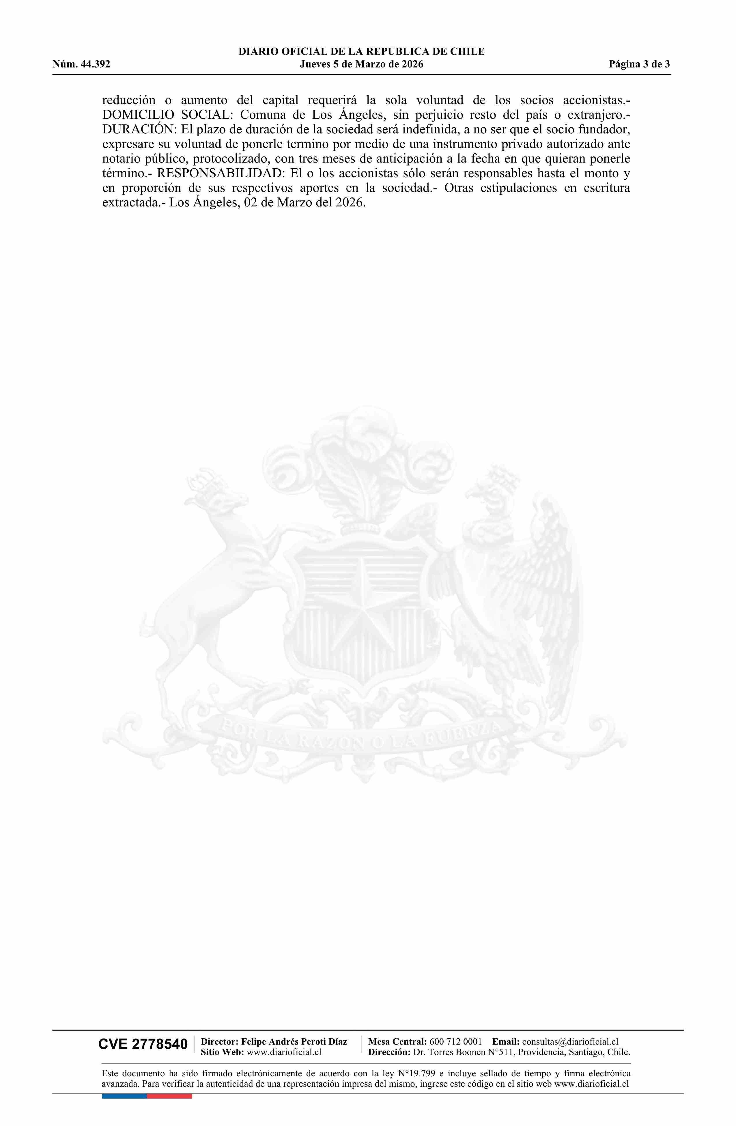 SOCIEDAD DE INVERSIONES RYB LIMITADA 05-03-2026 Diario Oficial Edición Electrónica |