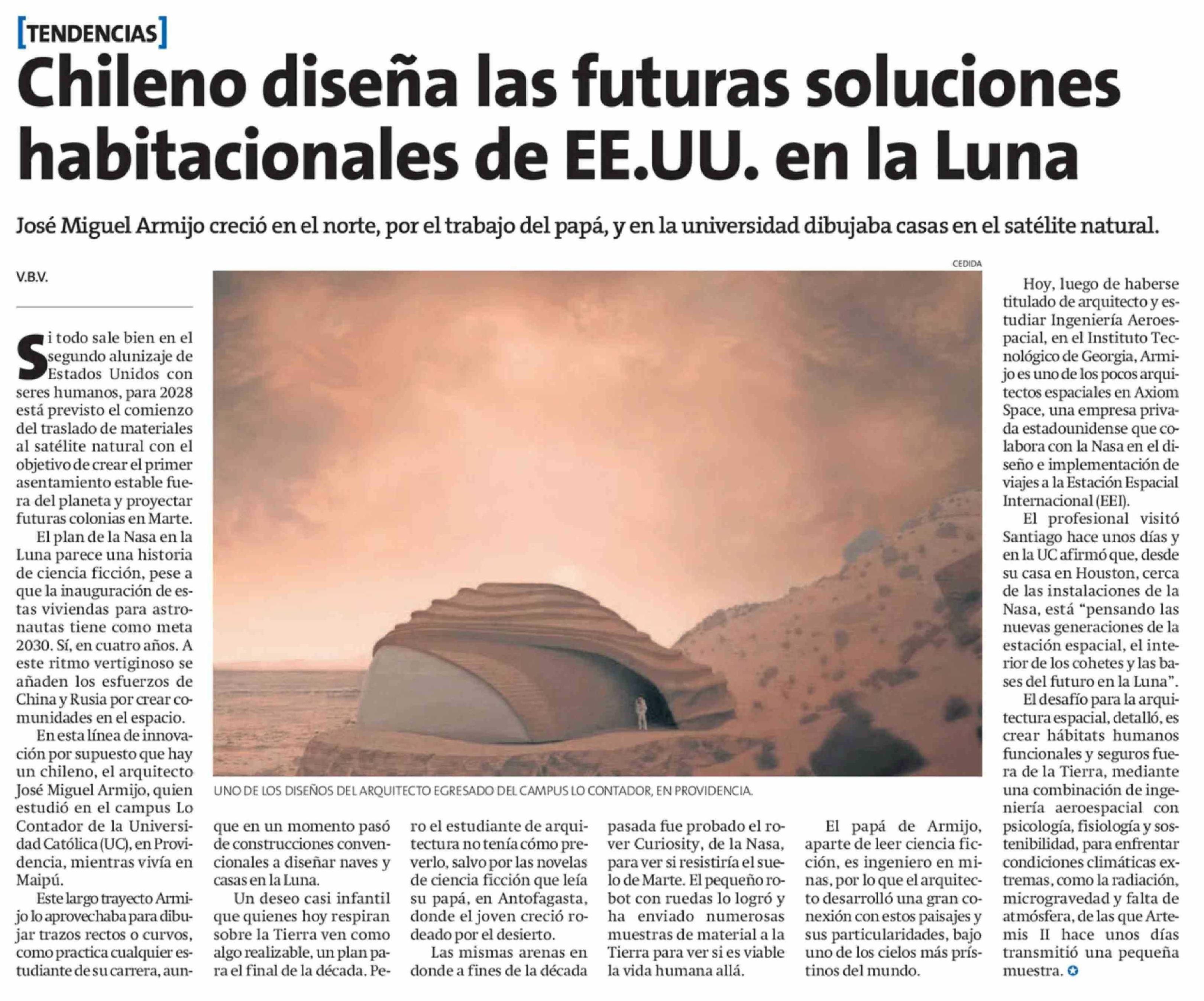 Título: Chileno diseña las futuras soluciones habitacionales de EE.UU. en la Luna