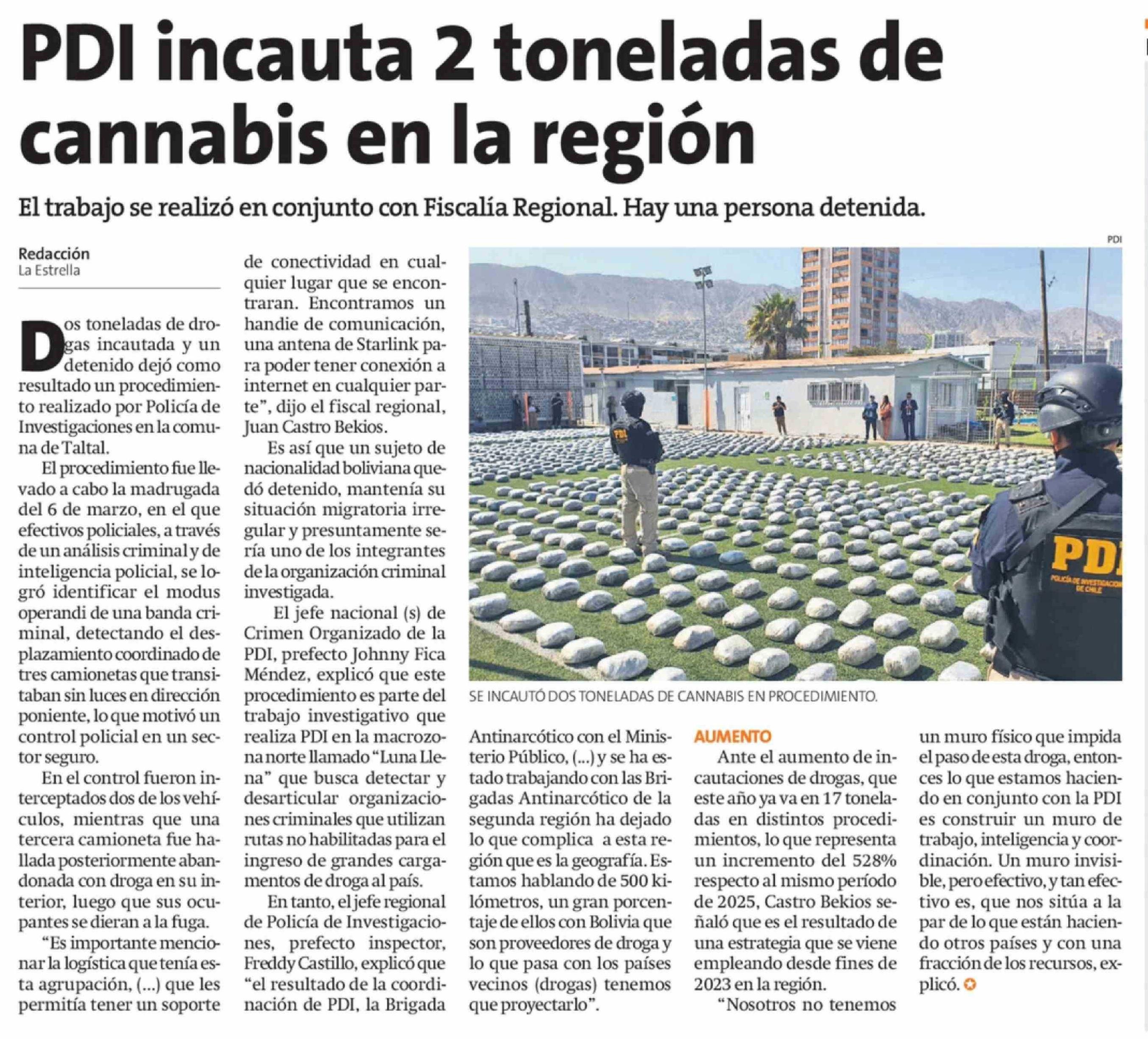 Título: PDI incauta 2 toneladas de cannabis en la región