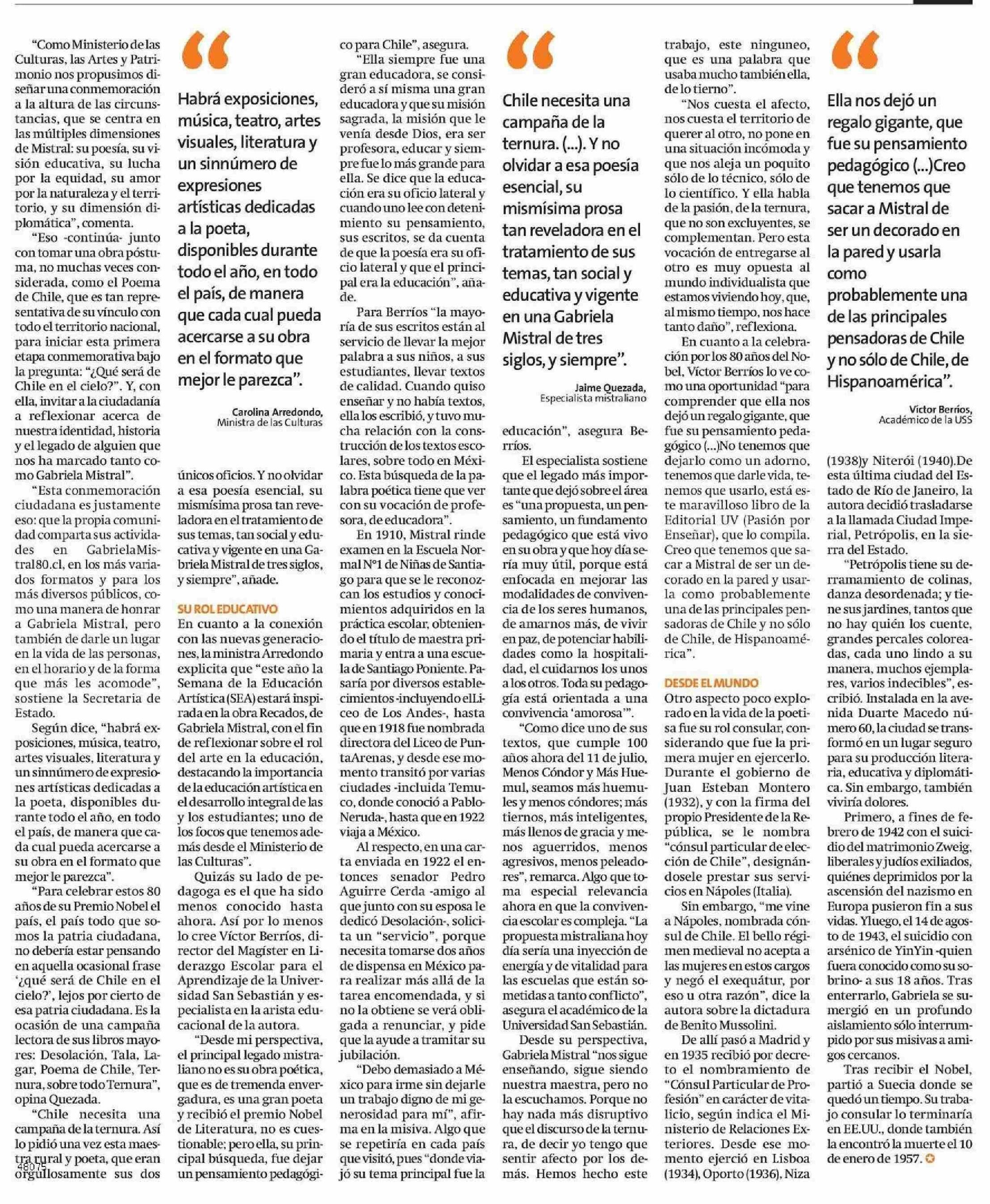 La La “ternura” de Gabriela Mistral vuelve a palestra al celebrar los 80 años de su Nobel 16-04-2025 La Estrella de Antofagasta |