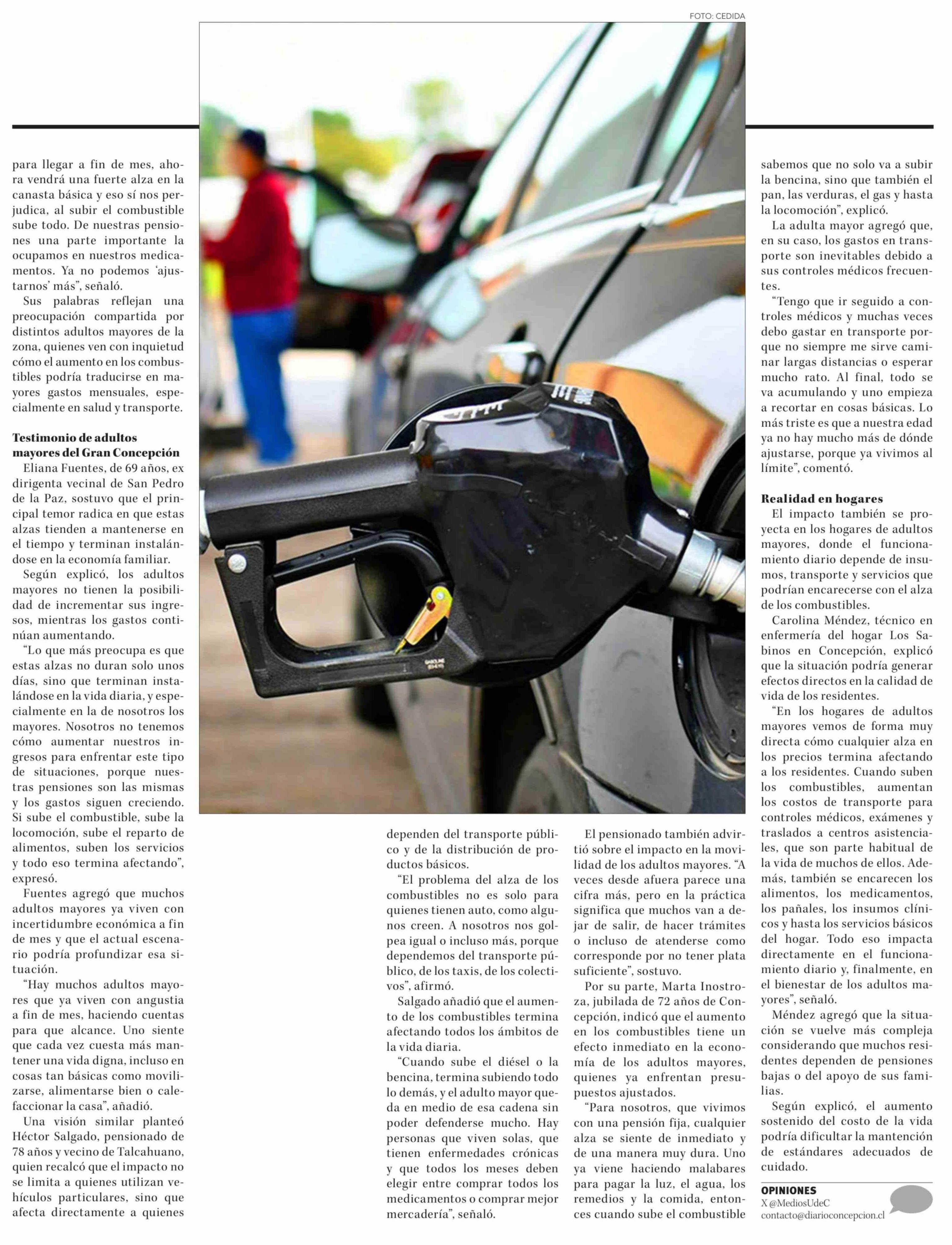 Personas mayores advierten duro impacto por alza de combustibles: "Ya no hay más de dónde ajustar" 01-04-2026 Diario Concepción |