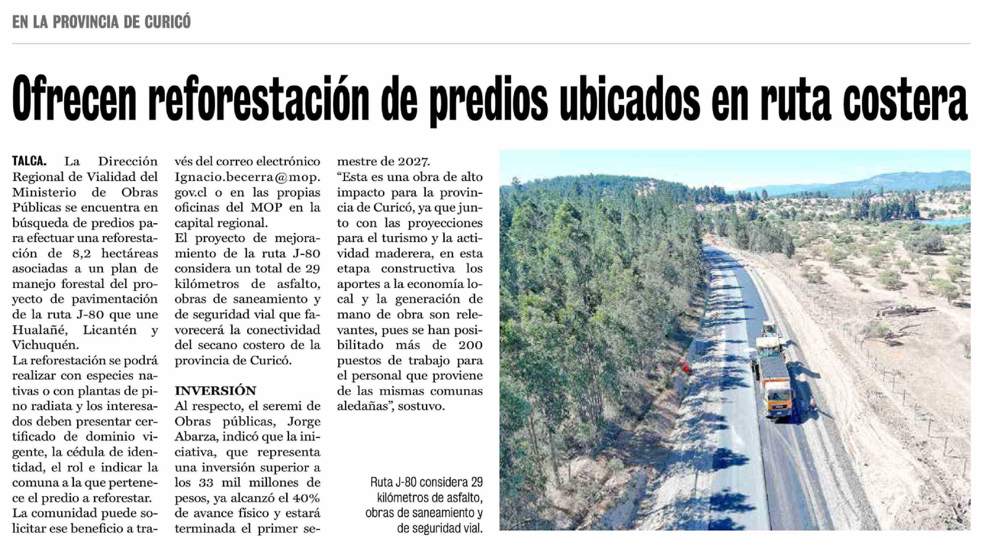 Título: Ofrecen reforestación de predios ubicados en ruta costera