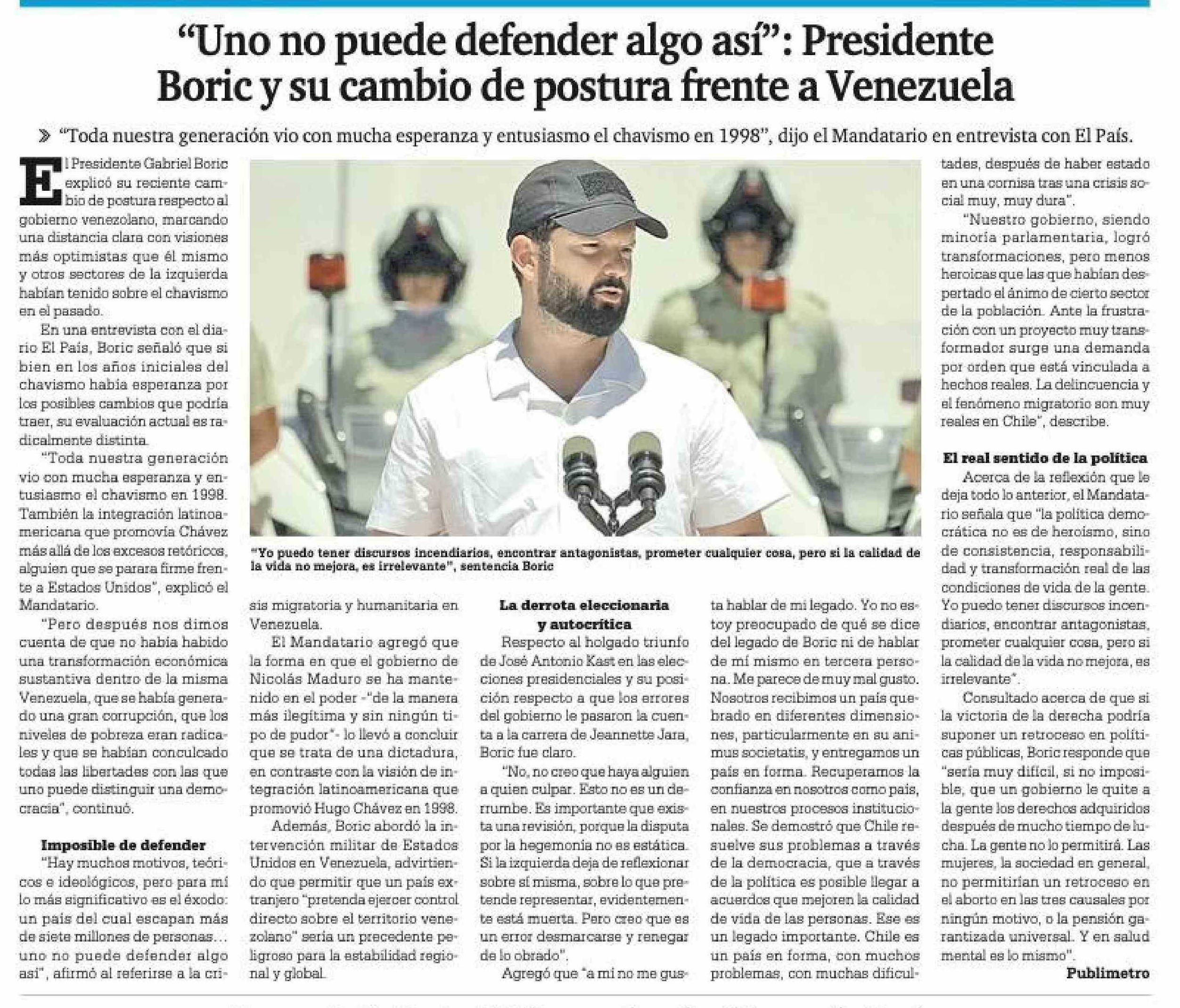 Título: "Uno no puede defender algo así": Presidente Boric y su cambio de postura frente a Venezuela