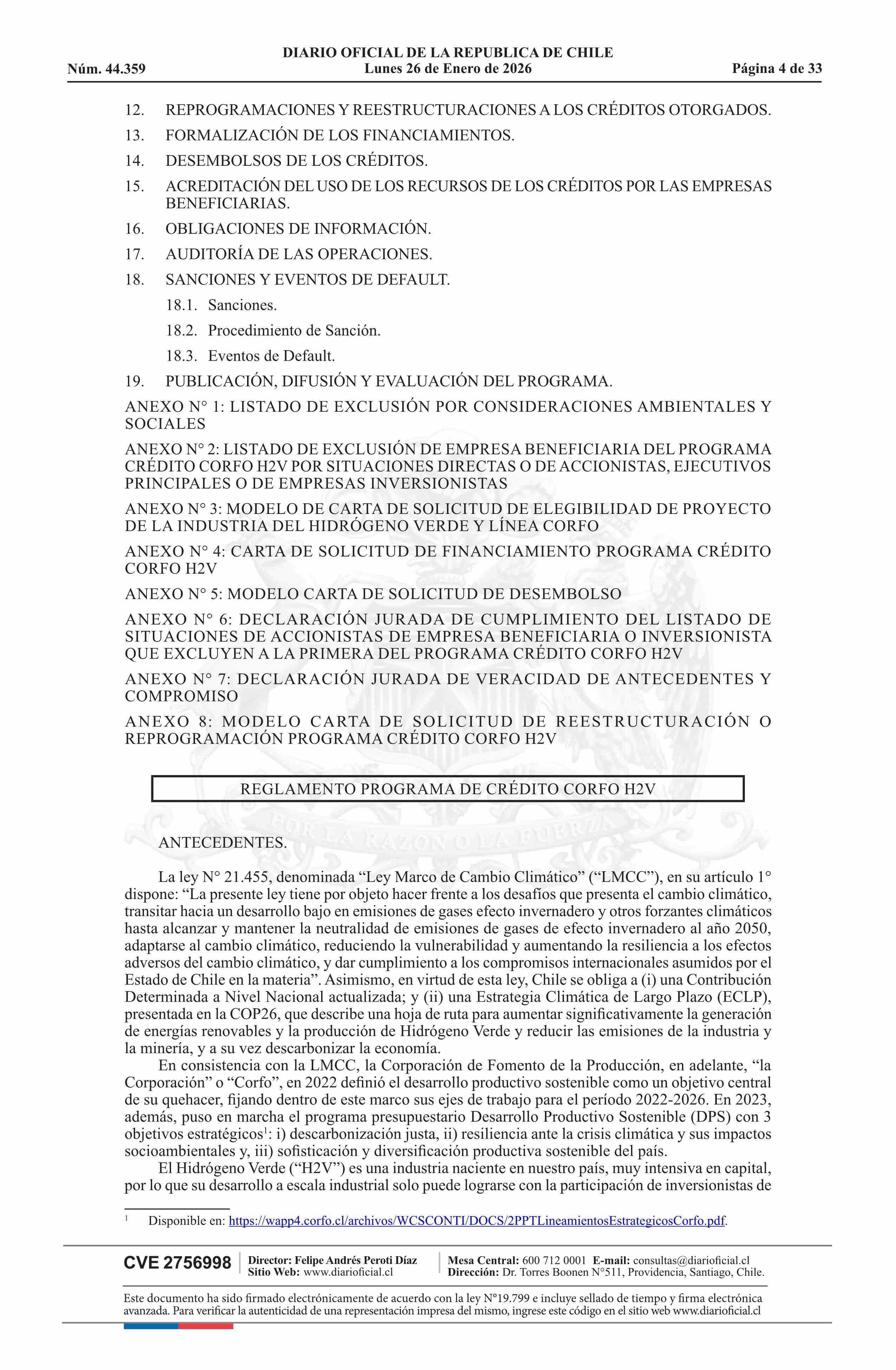 | Título: | Resolución número 71, de 2025.- Ejecuta Acuerdo N° 29.467, del Comité Ejecutivo de Créditos de Corfo, adoptado en Sesión N° 10-2025, que aprueba la creación del programa denominado Programa Crédito Corfo H2V y aprueba reglamento de dicho programa |