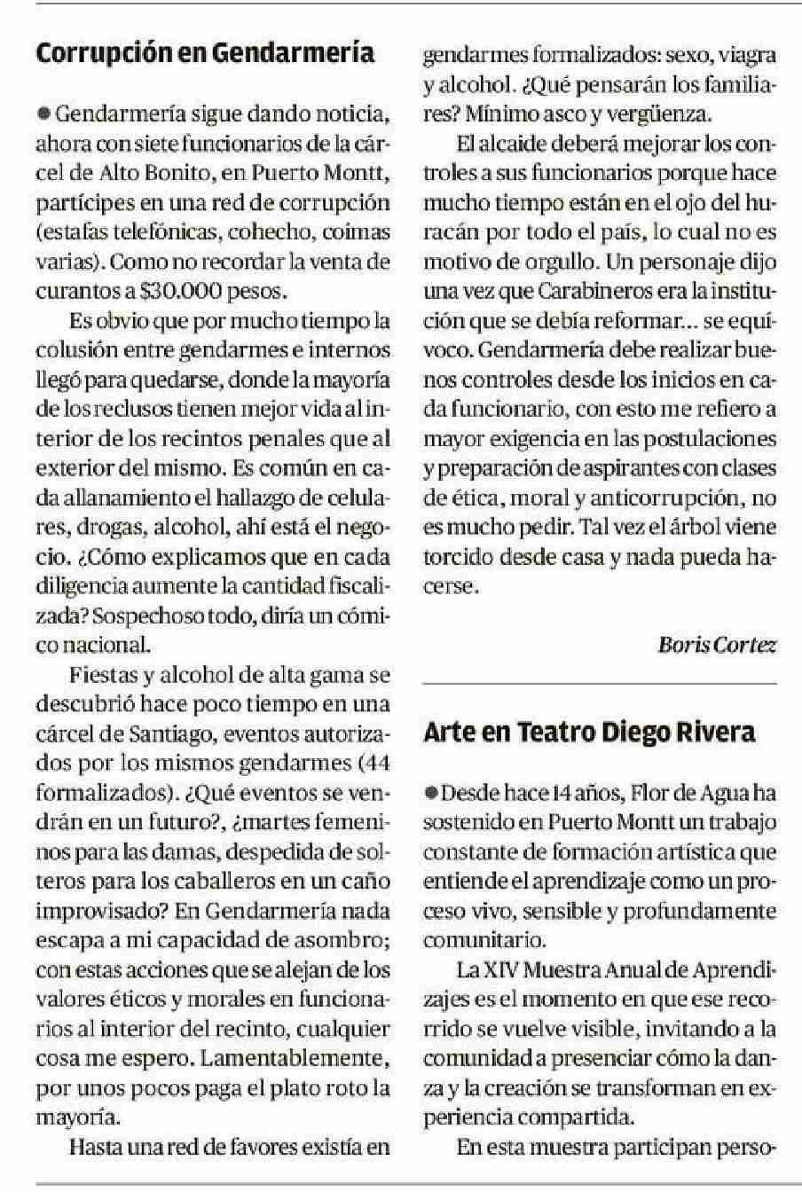 Cartas: Corrupción en Gendarmería 16-01-2026 El Llanquihue |