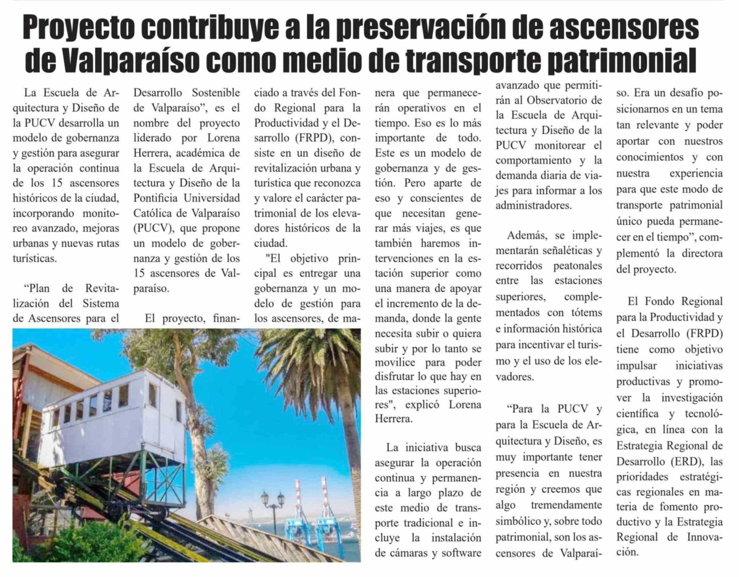 | Título: | Proyecto contribuye a la preservación de ascensores de Valparaíso como medio de transporte patrimonial |