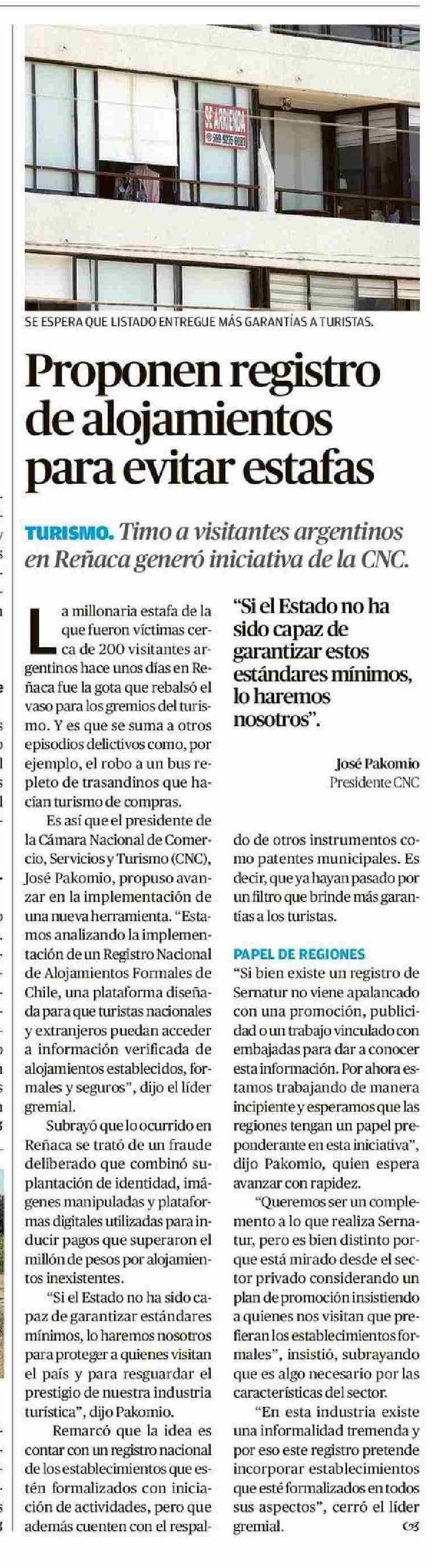 Título: Proponen registro de alojamientos para evitar estafas