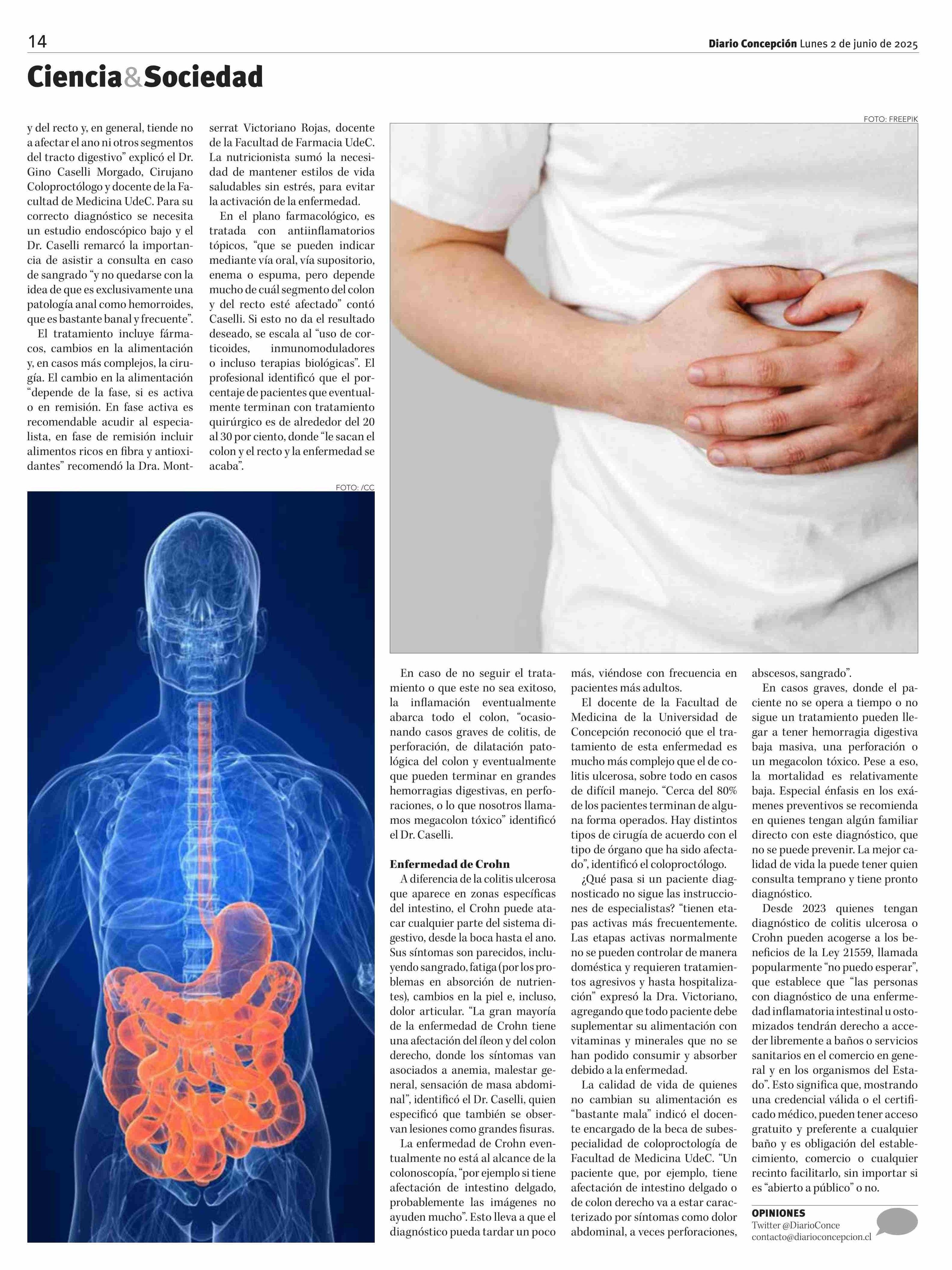 Enfermedades inflamatorias intestinales: diagnóstico oportuno y tratamiento adecuado marcan la diferencia 02-06-2025 Diario Concepción |