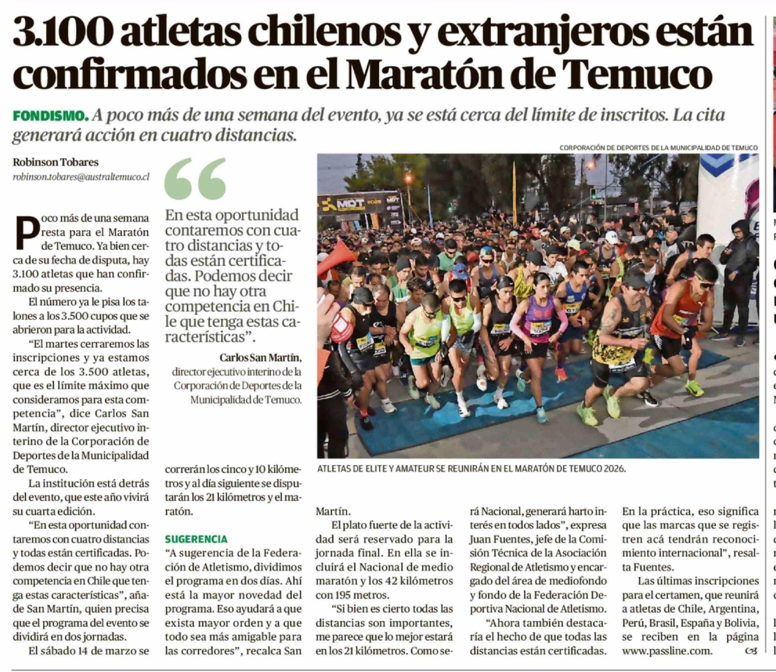 3.100 Atletas chilenos y extranjeros están confirmados en el Maratón de Temuco 06-03-2026 El Austral de la Araucanía |