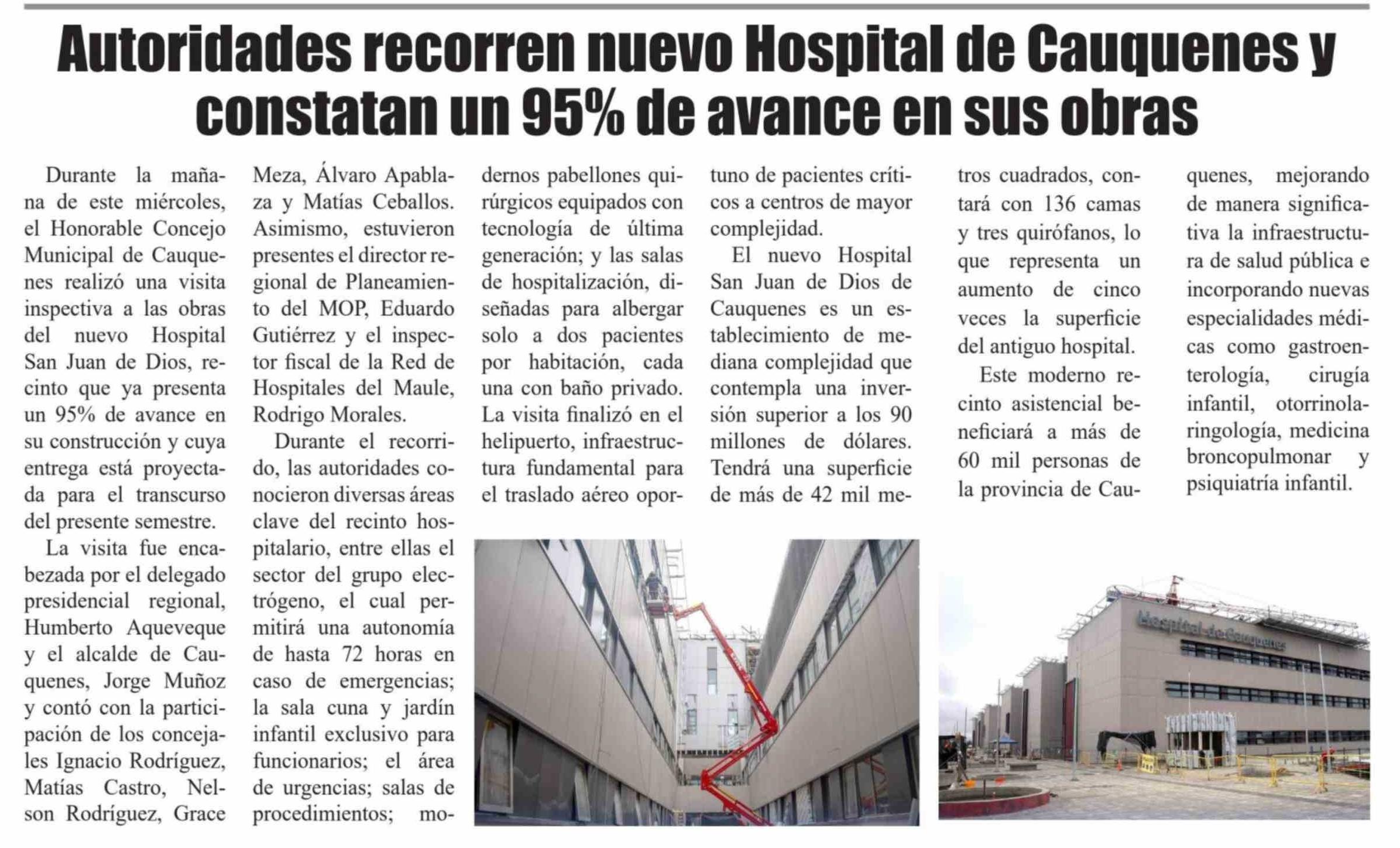Autoridades recorren nuevo Hospital de Cauquenes y constatan un 95% de avance en sus obras 05-02-2026 El Heraldo |