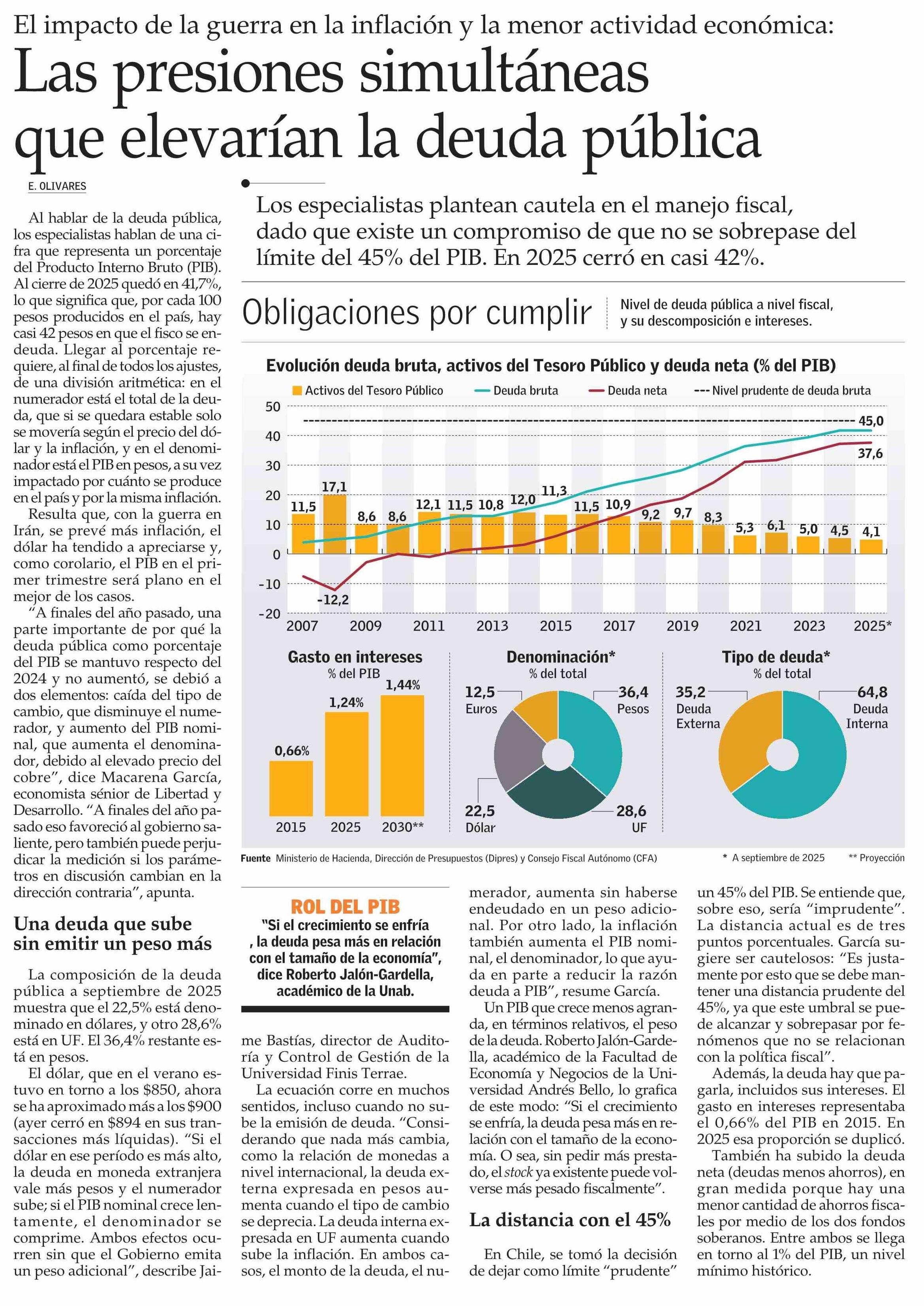 Las presiones simultáneas que elevarían la deuda pública 14-04-2026 El Mercurio |