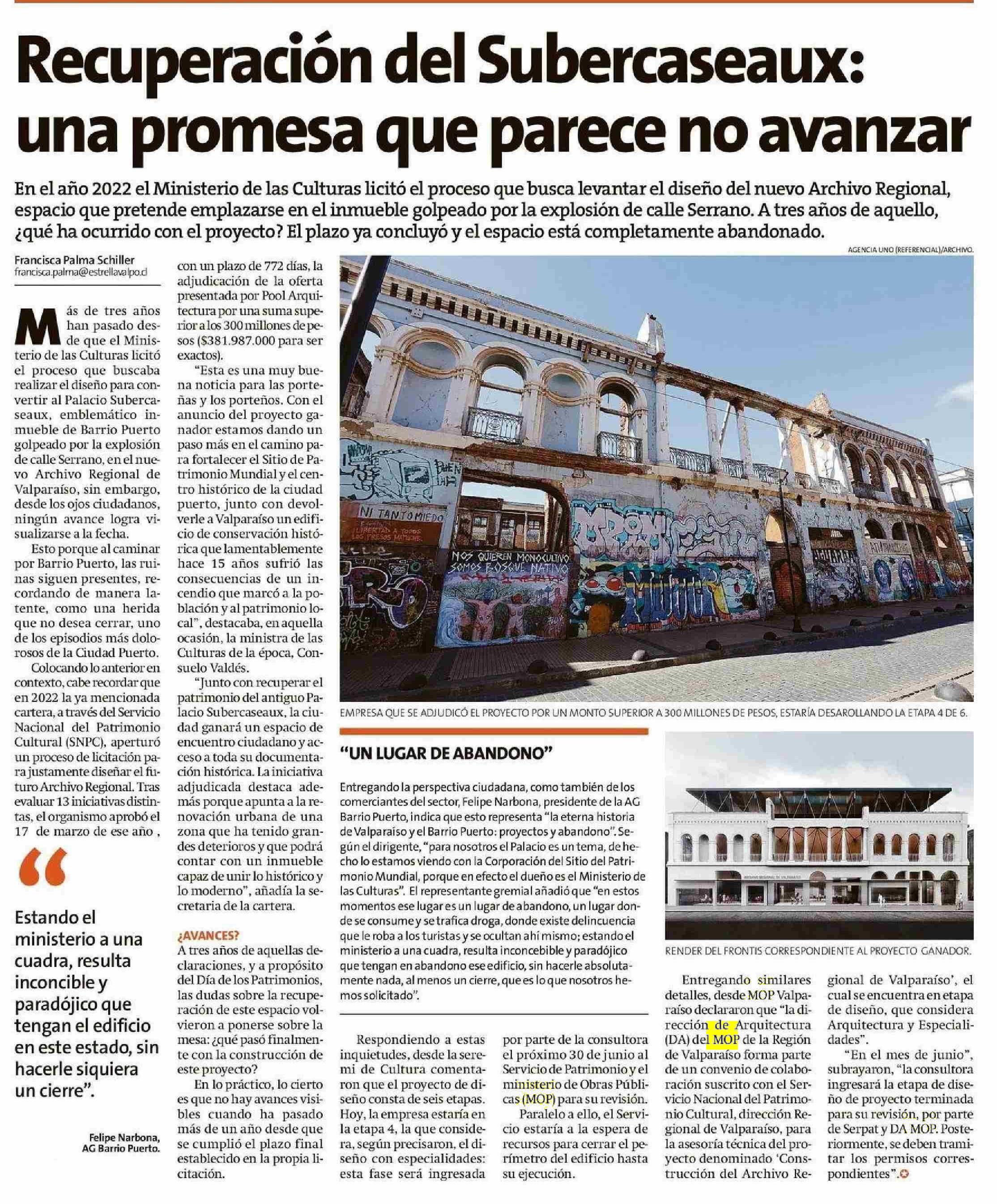 Recuperación del Subercaseaux: una promesa que parece no avanzar 27-05-2025 La Estrella de Valparaíso |