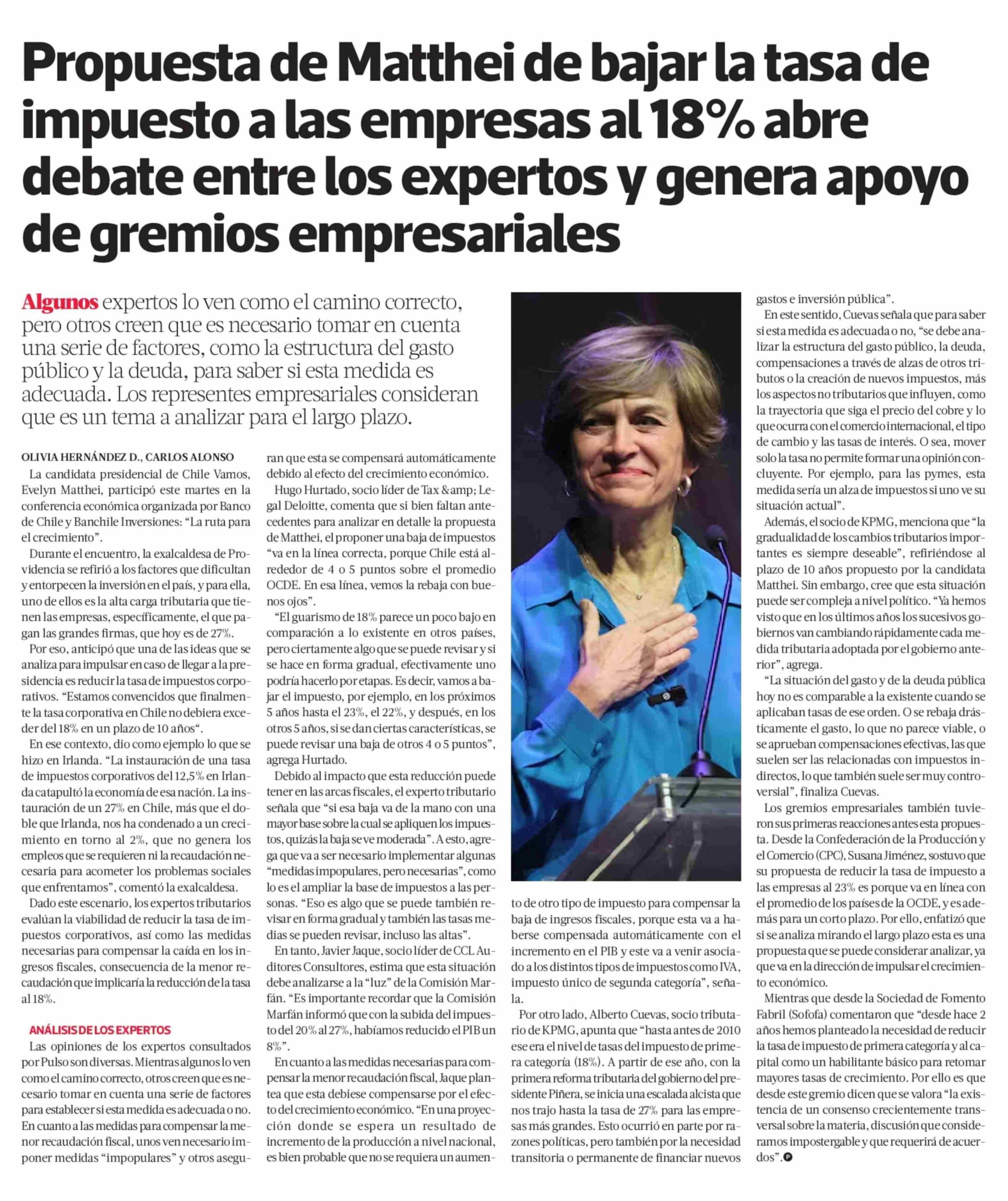 | Título: | Propuesta de Matthei de bajar la tasa de impuesto a las empresas al 18% abre debate entre los expertos y genera apoyo de gremios empresariales |