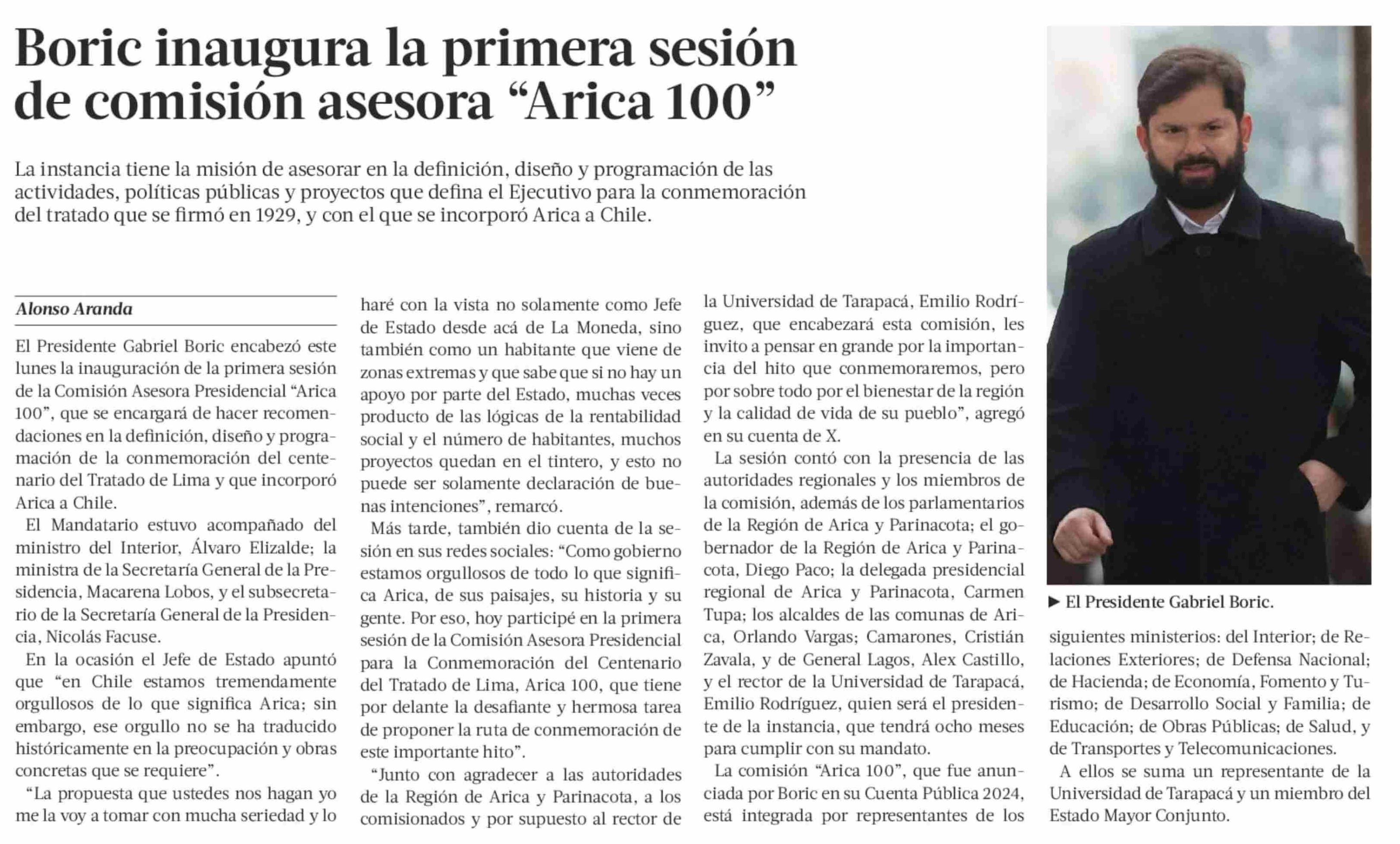 Título: Boric inaugura la primera sesión de comisión asesora “Arica 100”