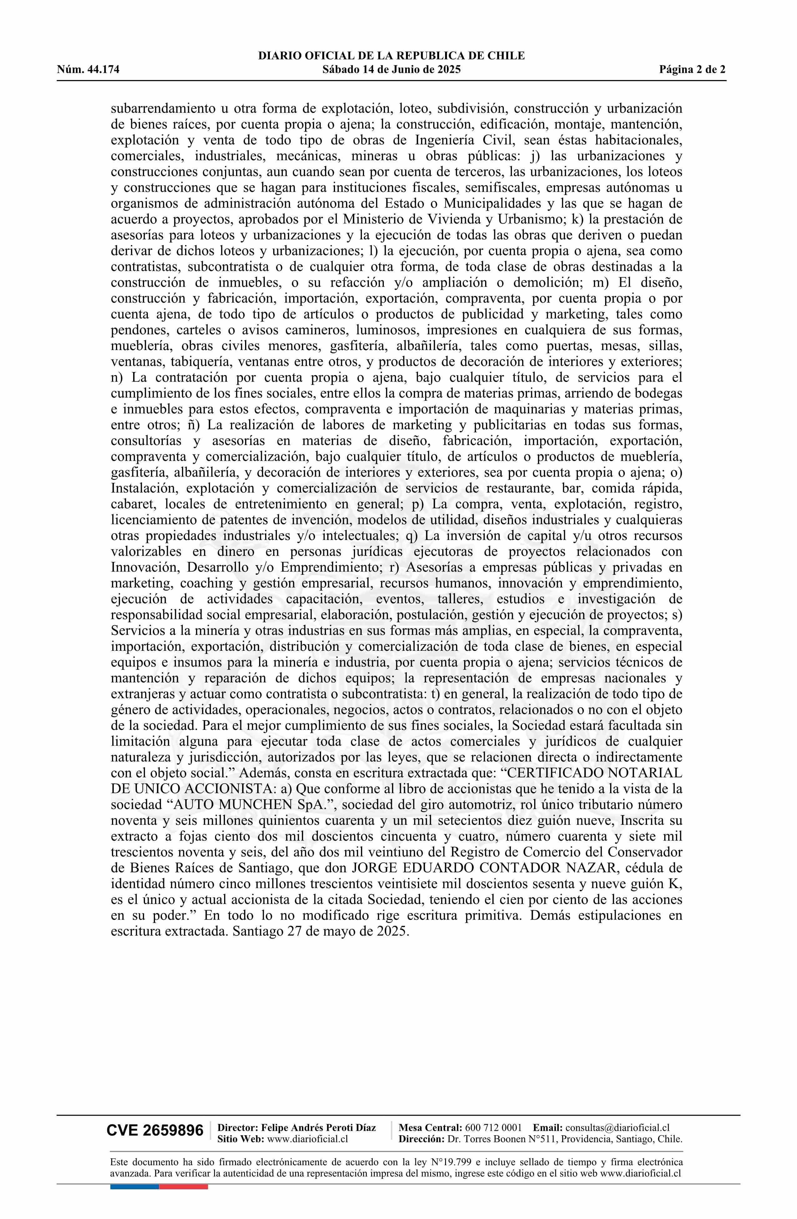 AUTO MUNCHEN SpA 96.541.710-9* 14-06-2025 Diario Oficial Edición Electrónica |