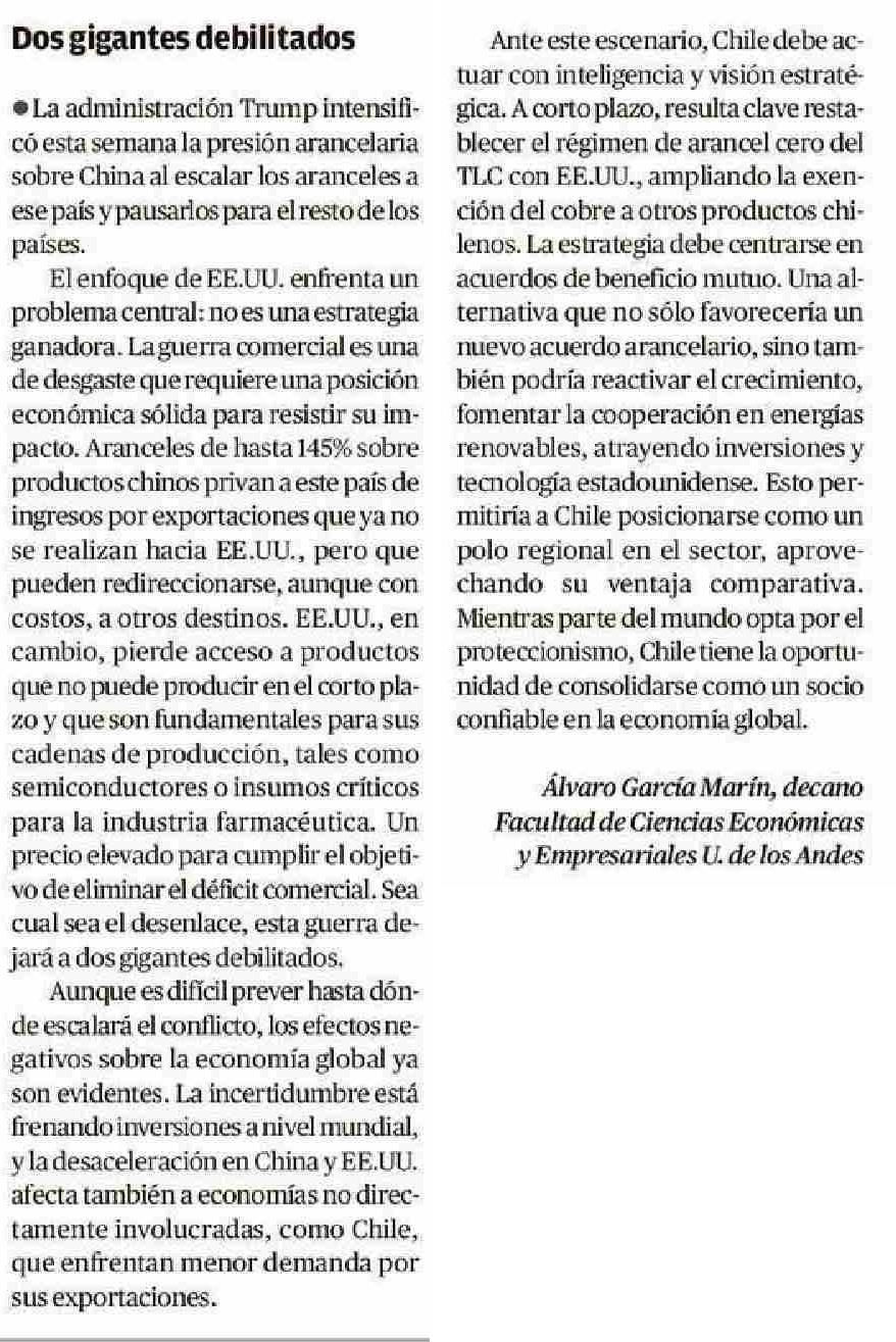 Cartas: Dos gigantes debilitados 16-04-2025 El Austral de Osorno |