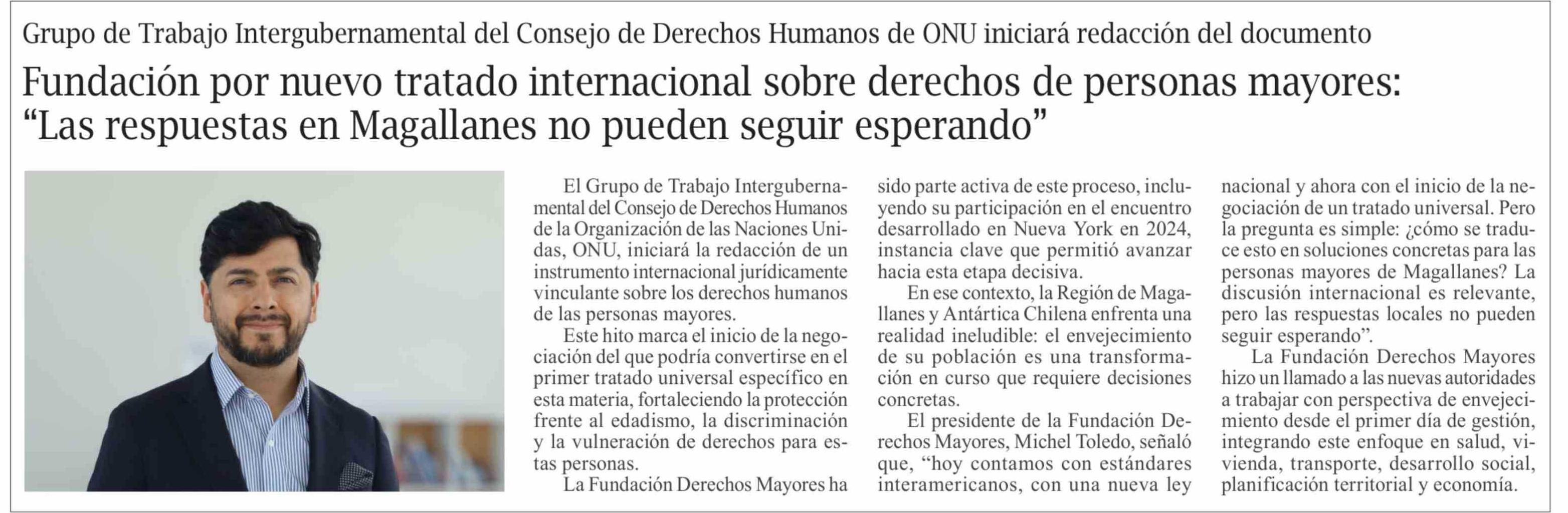 Título: Fundación por nuevo tratado internacional sobre derechos de personas mayores: "Las respuestas en Magallanes no pueden seguir esperando"