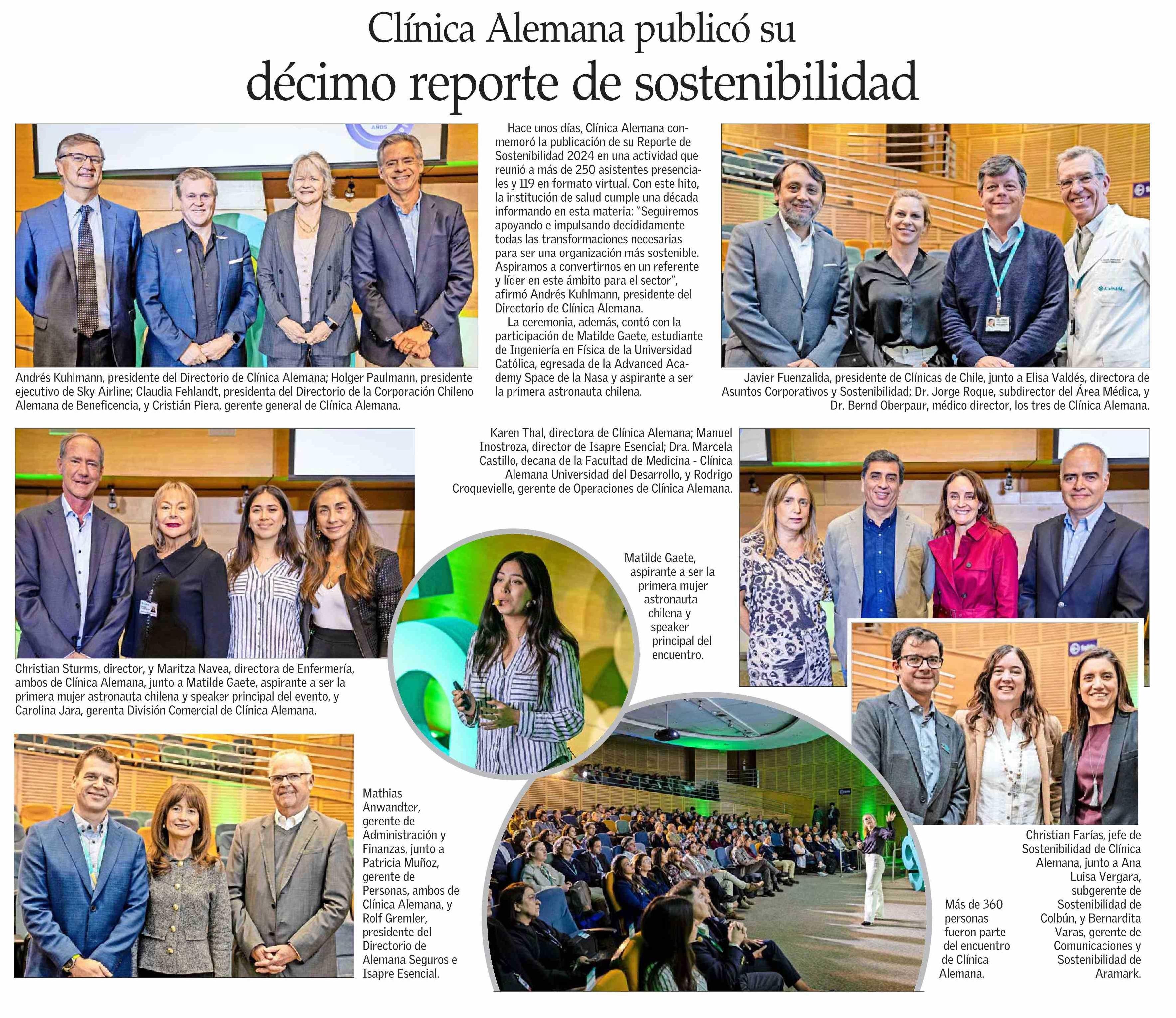 Clínica Alemana publicó su décimo reporte de sostenibilidad 03-05-2025 El Mercurio |