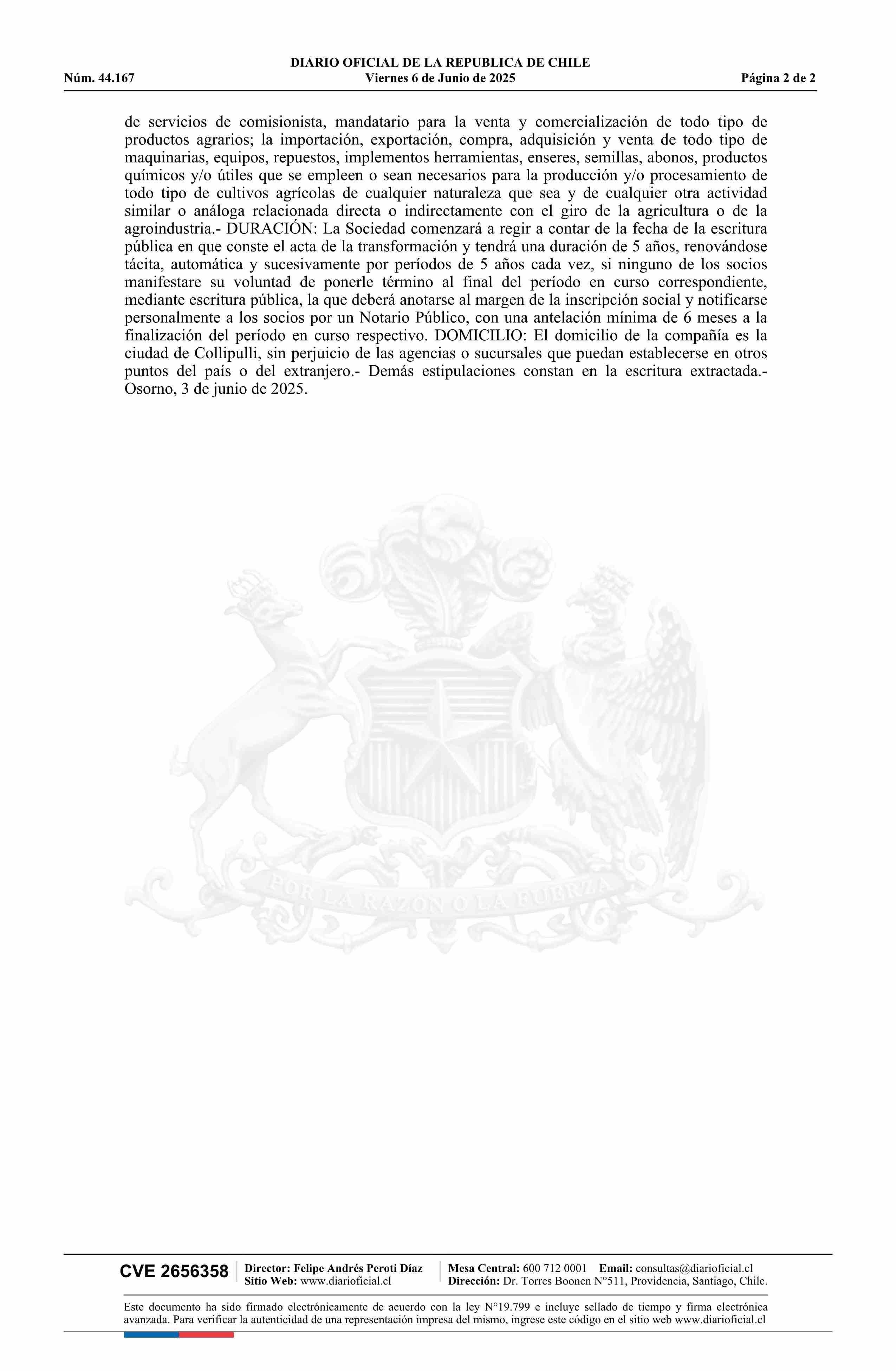 SOCIEDAD AGRÍCOLA TAITAMITO S.A. 76.225.273-2 06-06-2025 Diario Oficial Edición Electrónica |