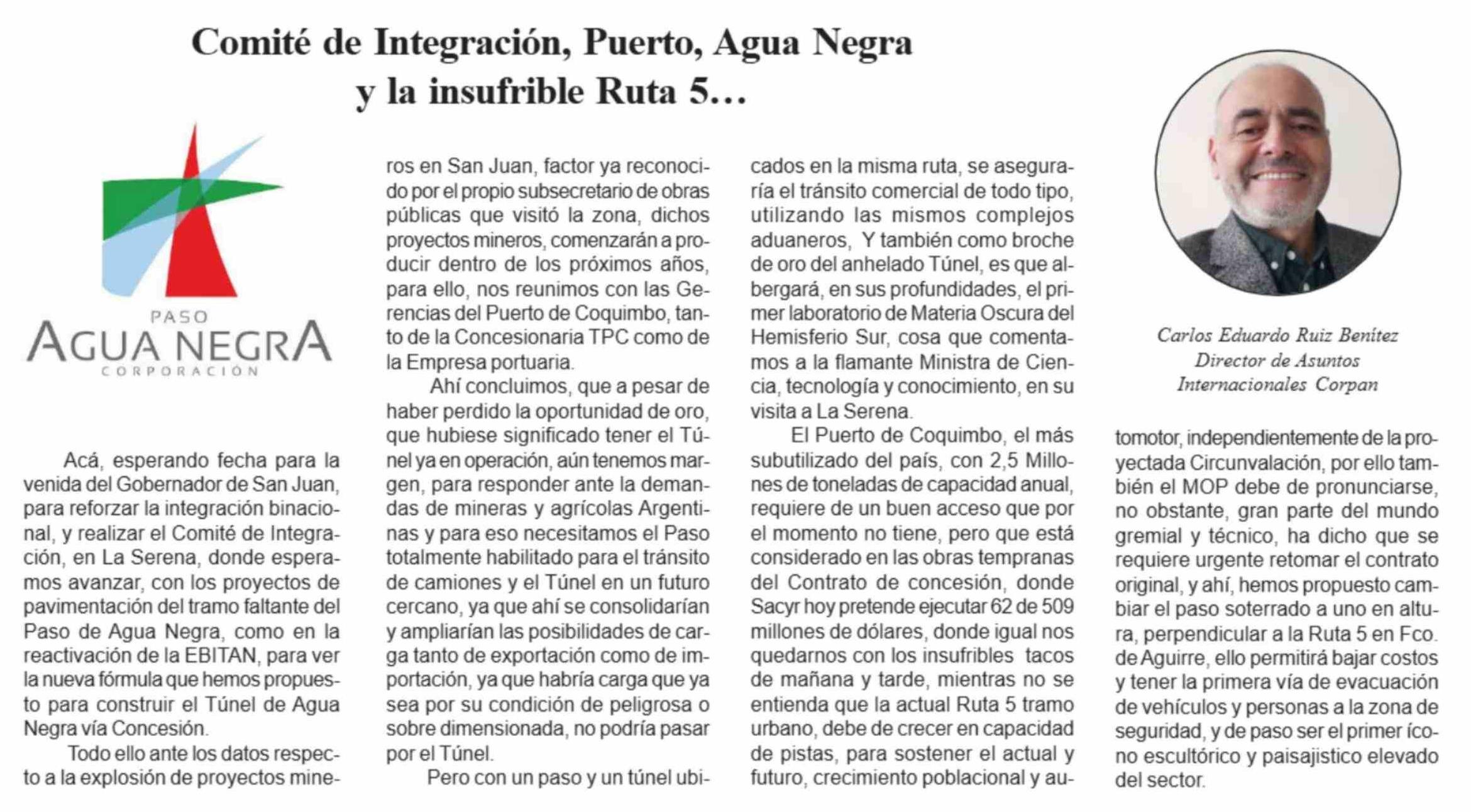 Columnas de Opinión: PASO AGUA NEGRA 29-03-2026 Diario la Región |