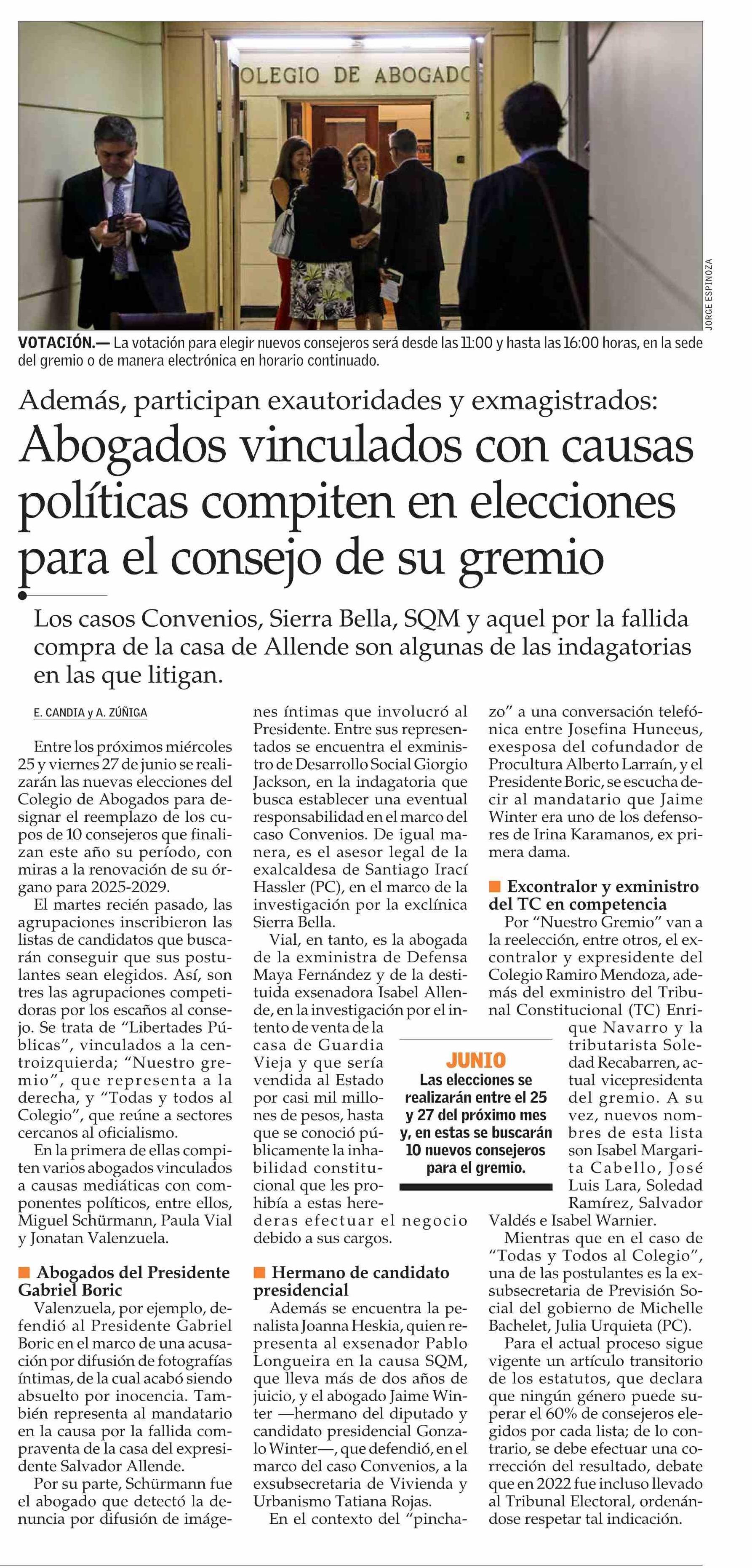 Título: Abogados vinculados con causas políticas compiten en elecciones para el consejo de su gremio