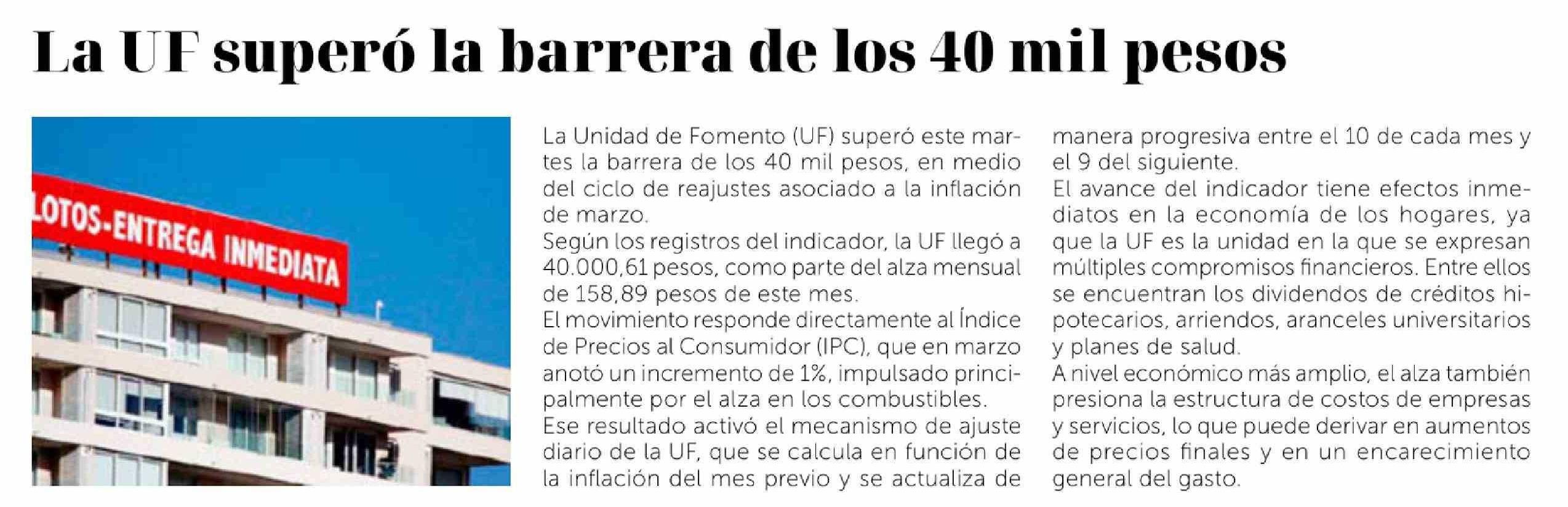 | Título: | La UF superó la barrera de los 40 mil pesos |