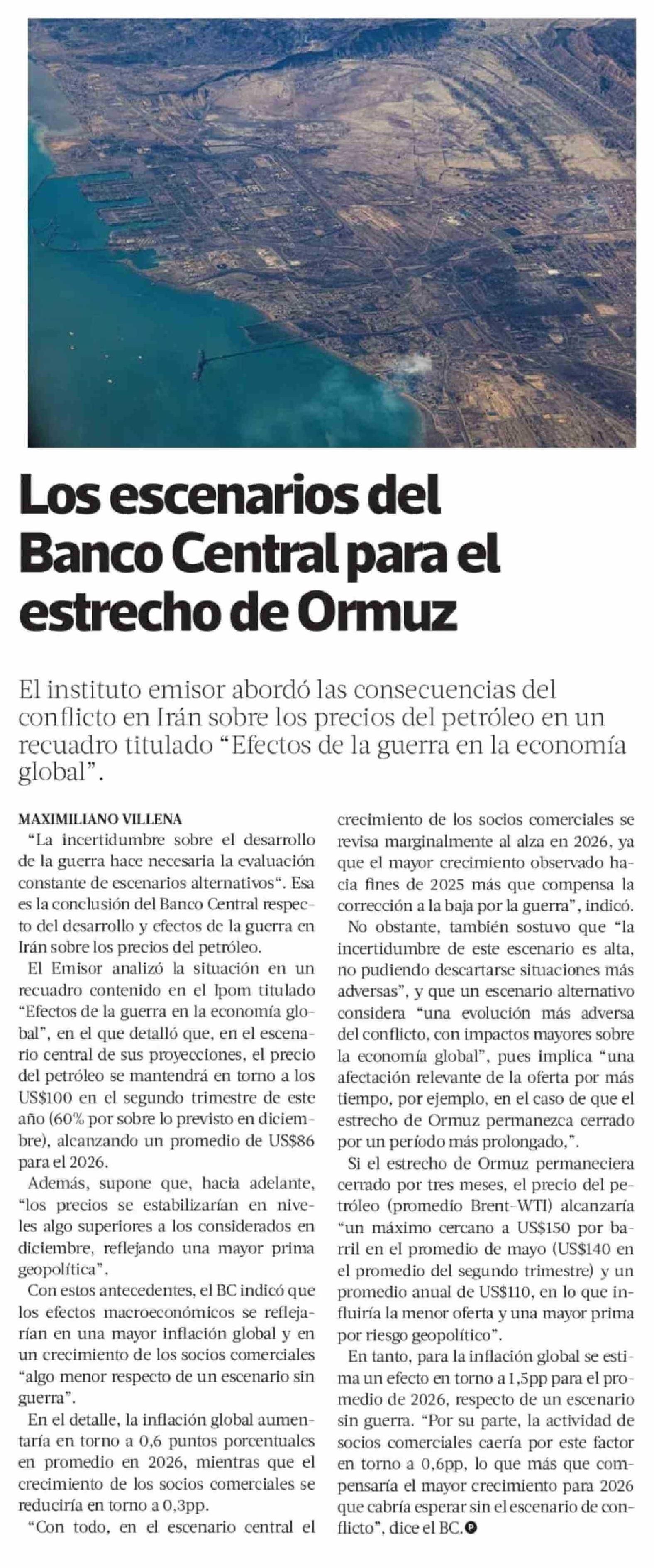 Título: Los escenarios del Banco Central para el estrecho de Ormuz