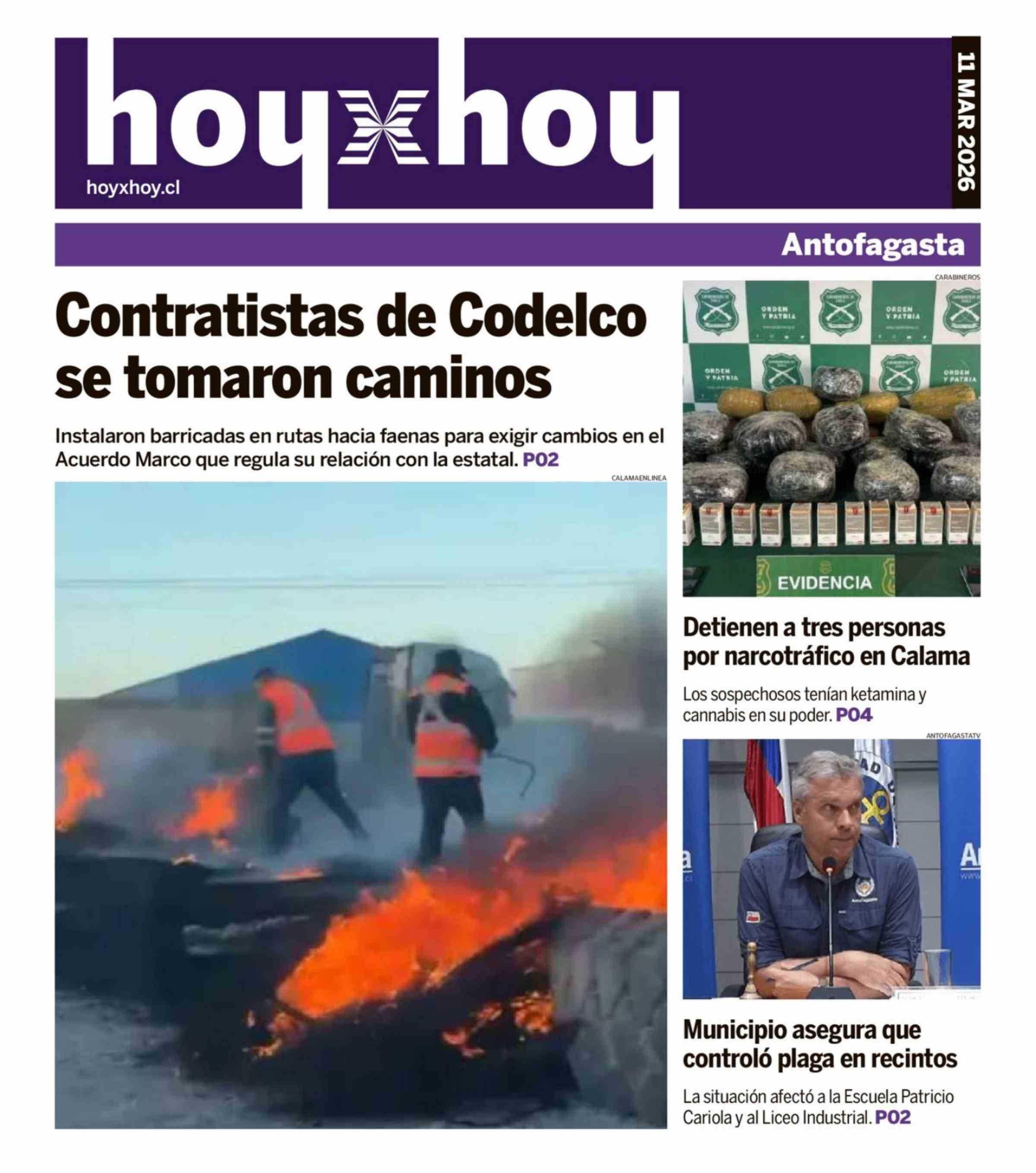 PORTADA HOYXHOY ANTOFAGASTA CHILE 11-03-2026 Hoy x Hoy Antofagasta |