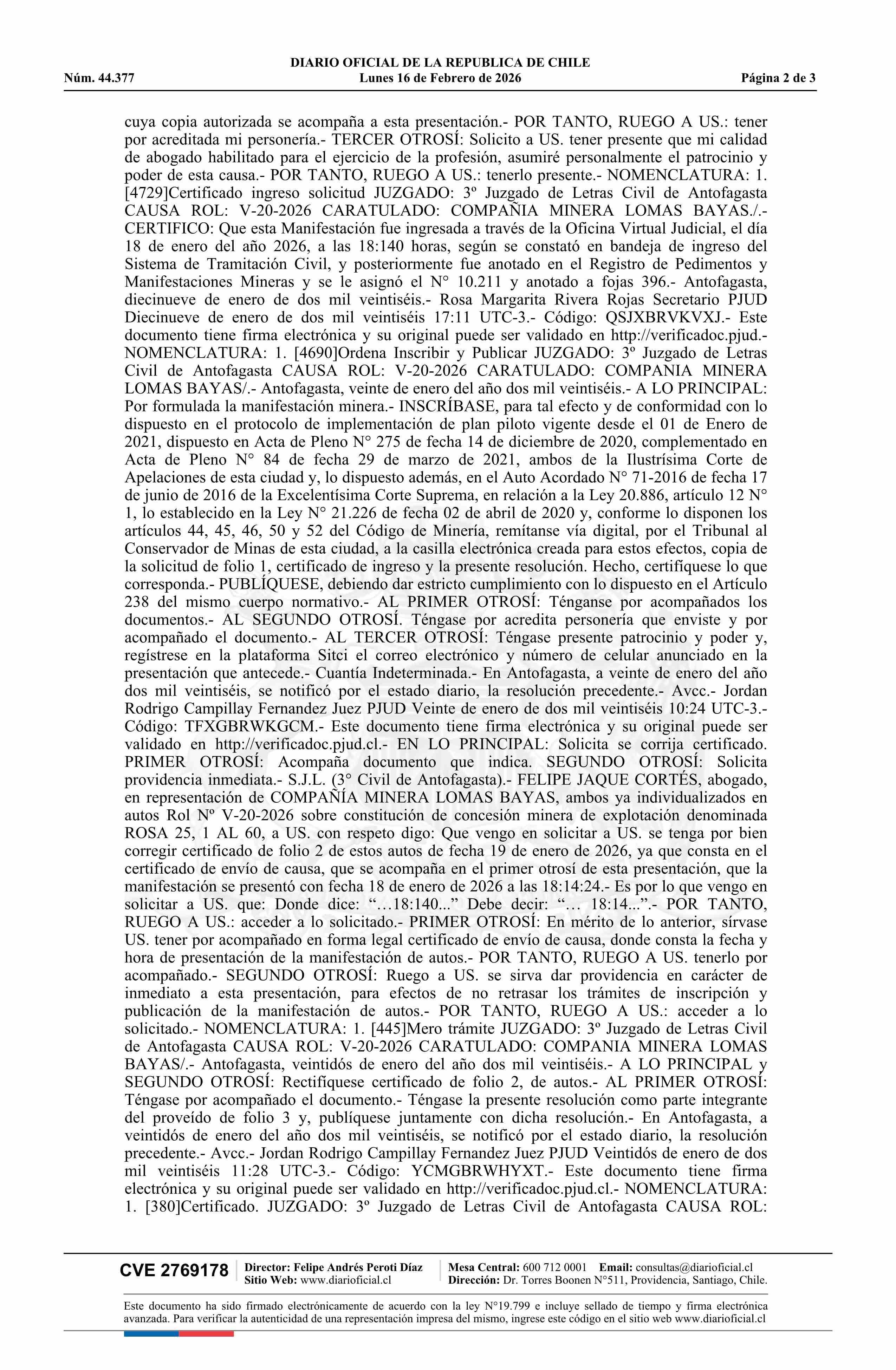 16-02-2026 DIARIO OFICIAL CHILE - BOLETÍN OFICIAL DE MINERÍA
