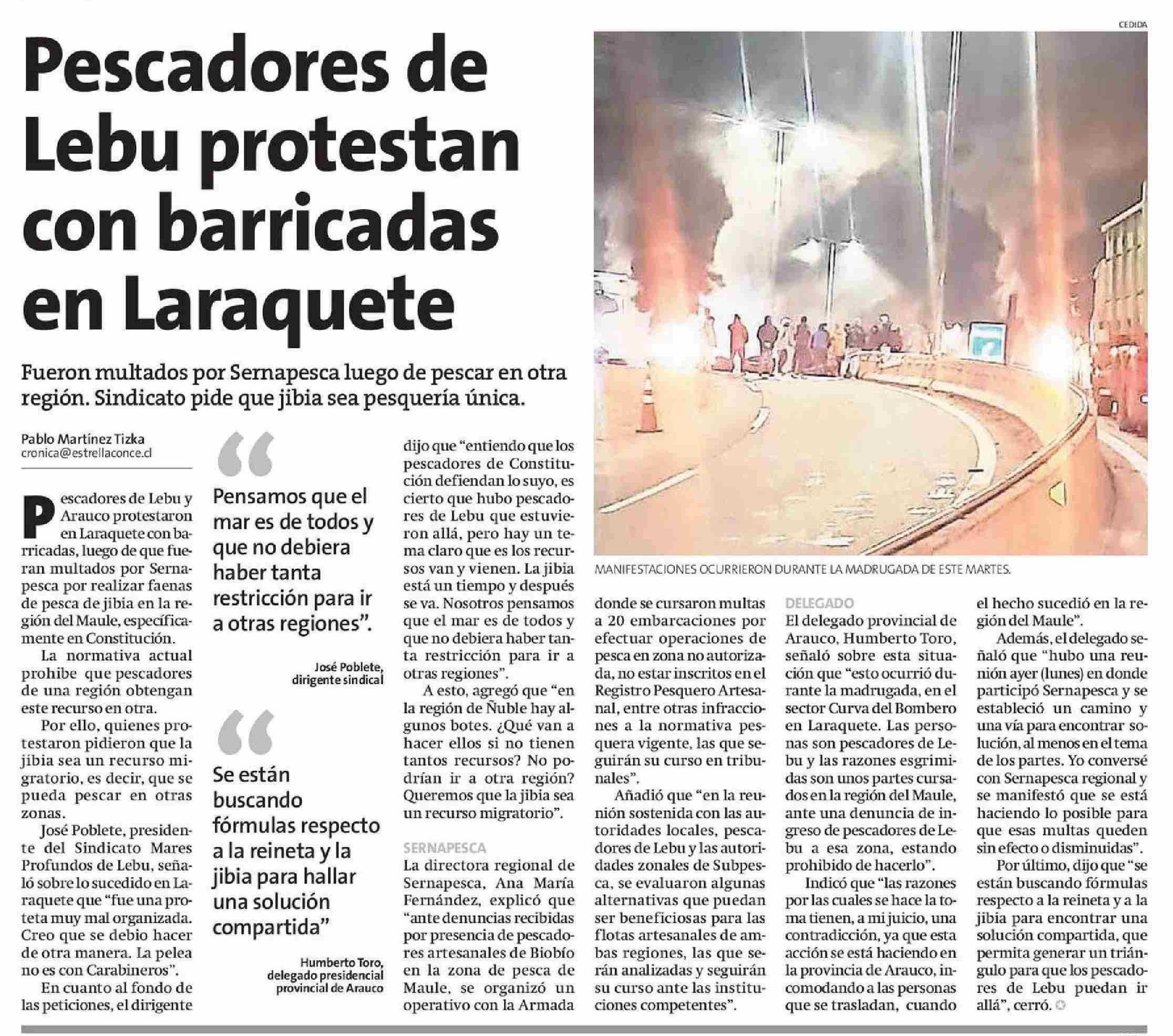 Título: Pescadores de Lebu protestan en Laraquete con barricadas