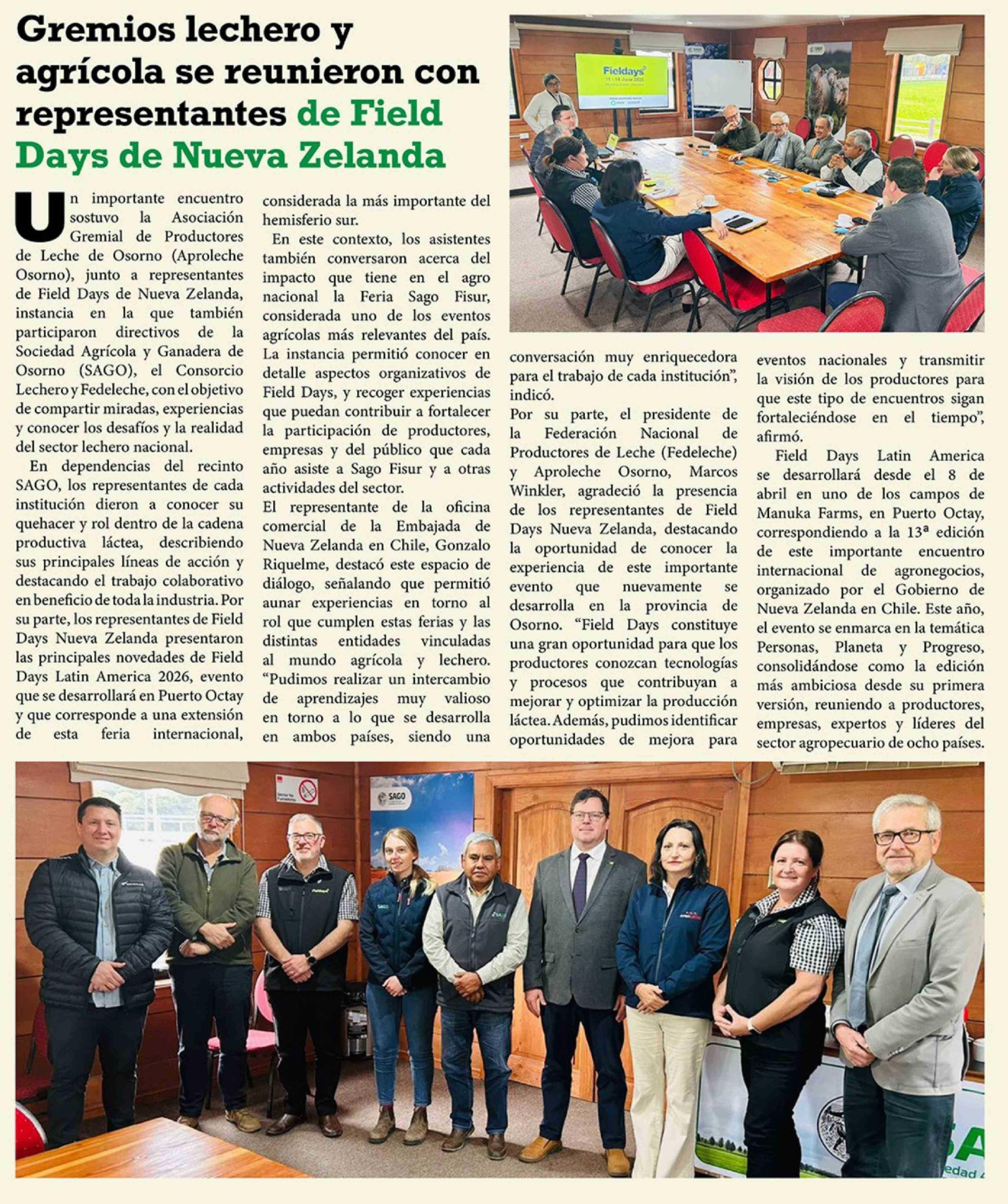 Título: Gremios lechero y agrícola se reunieron con representantes de Field Days de Nueva Zelanda