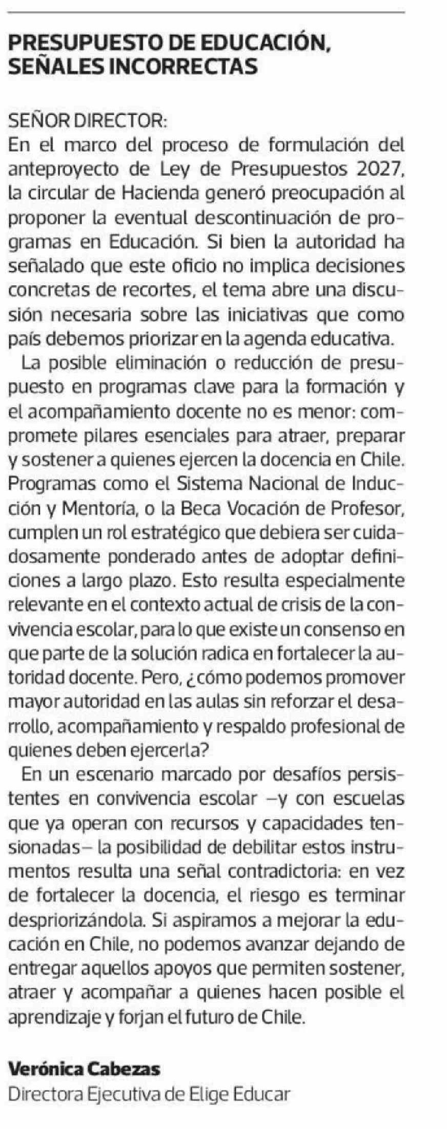 Título: CARTAS: PRESUPUESTO DE EDUCACIÓN, SEÑALES INCORRECTAS