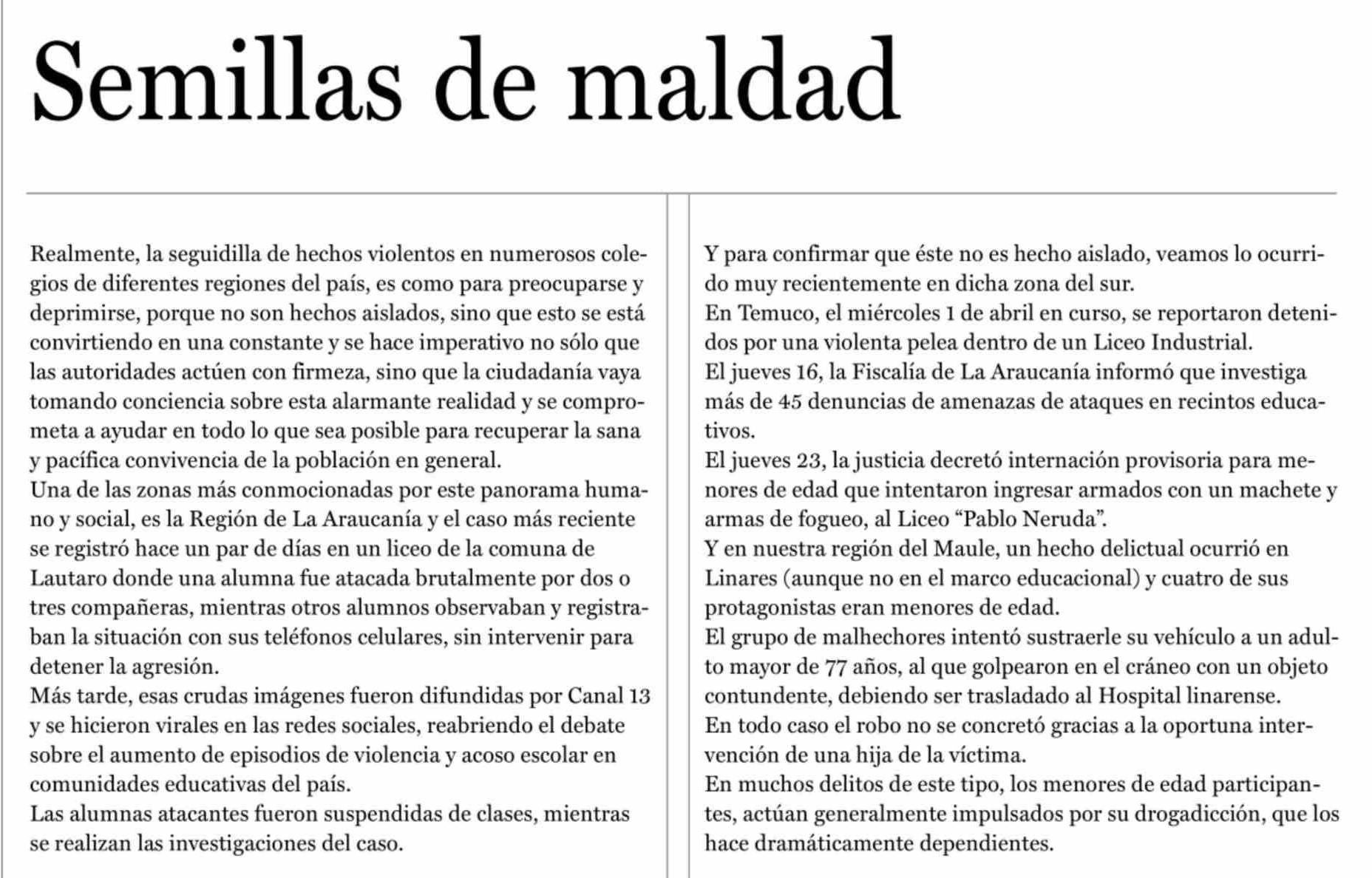 Fecha: 25-04-2026 Sector: Editorial Región: Región del Maule