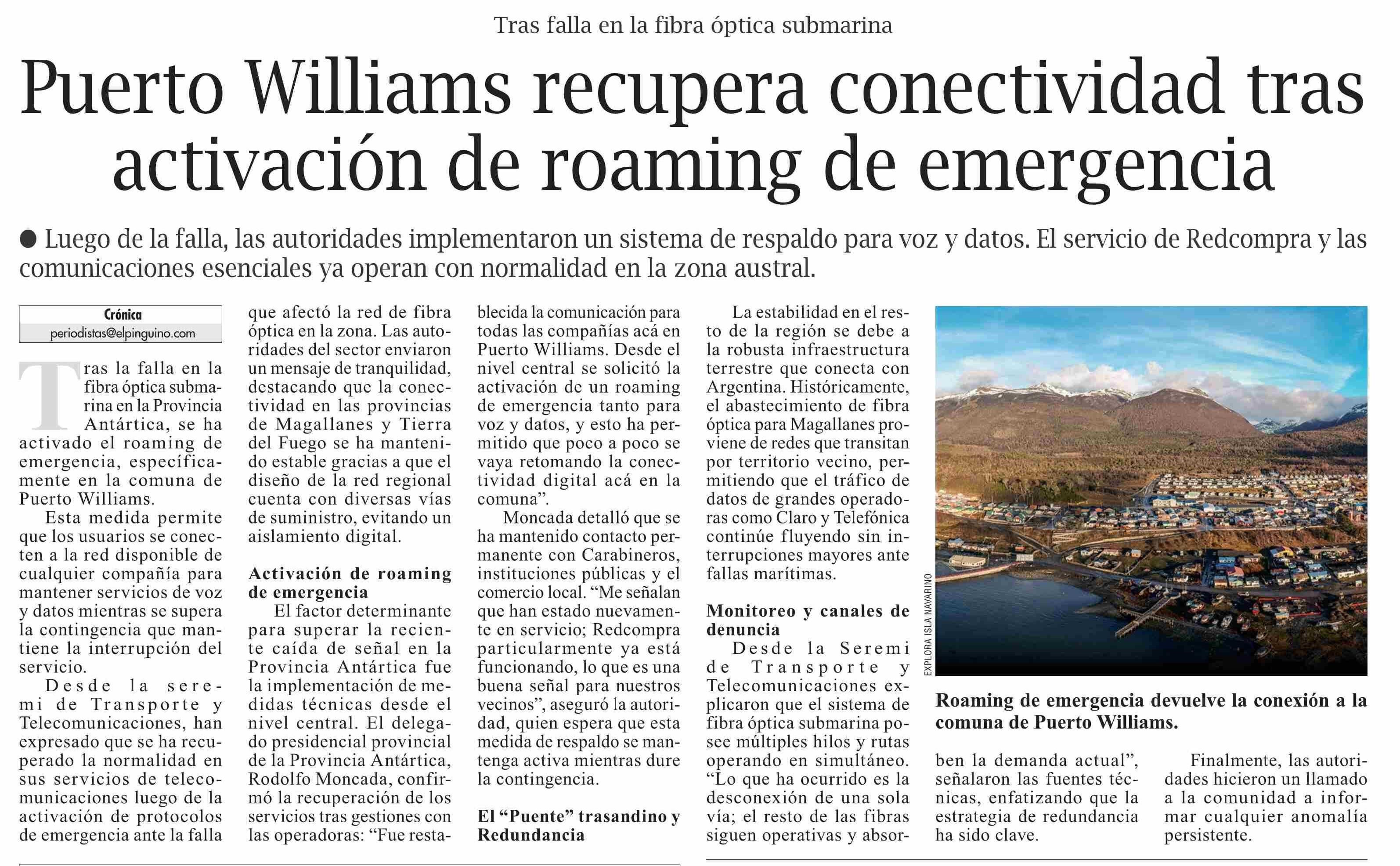 Título: Puerto Williams recupera conectividad tras activación de roaming de emergencia