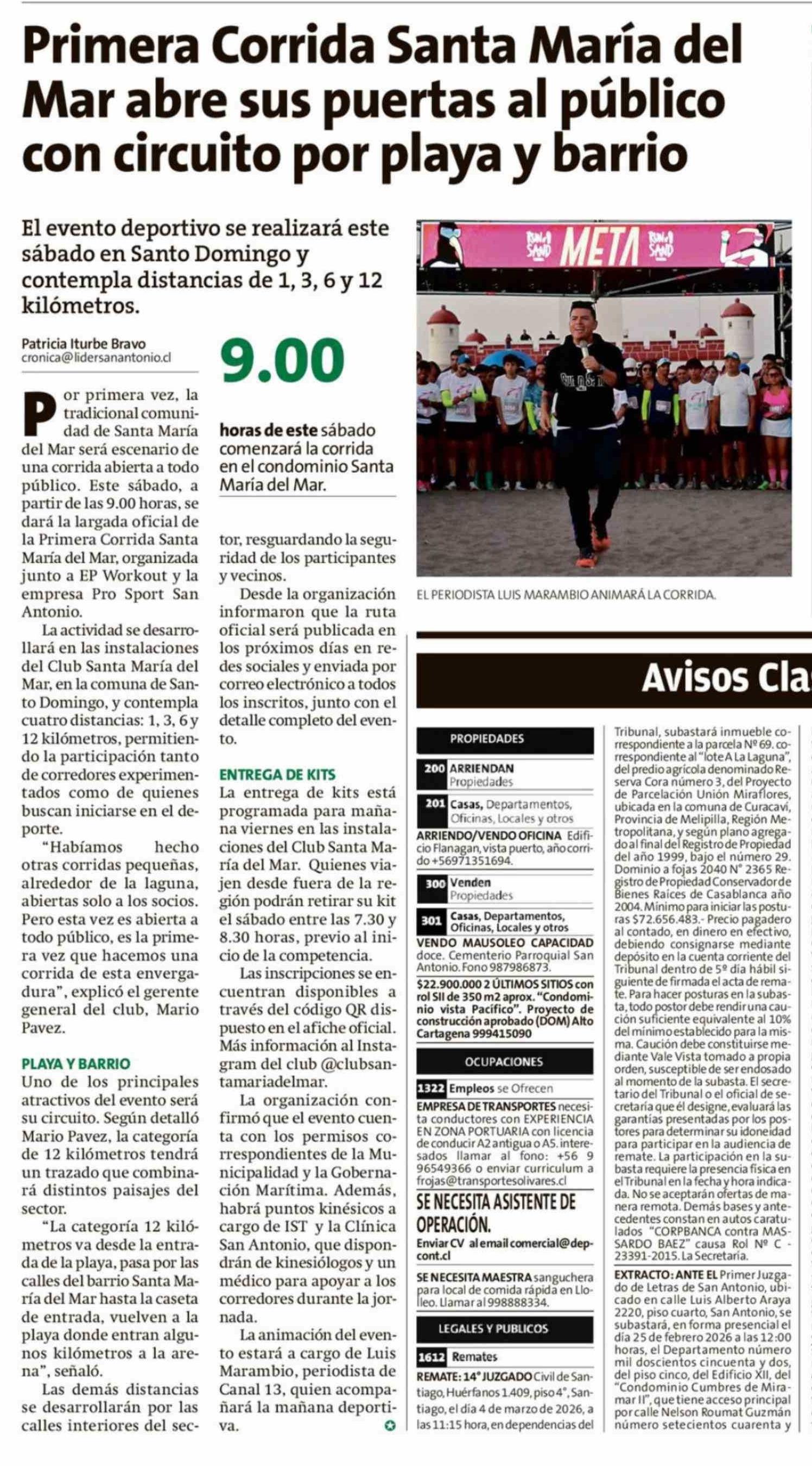 Primera Corrida Santa María del Mar abre sus puertas al público con circuito por playa y barrio 12-02-2026 El Líder |