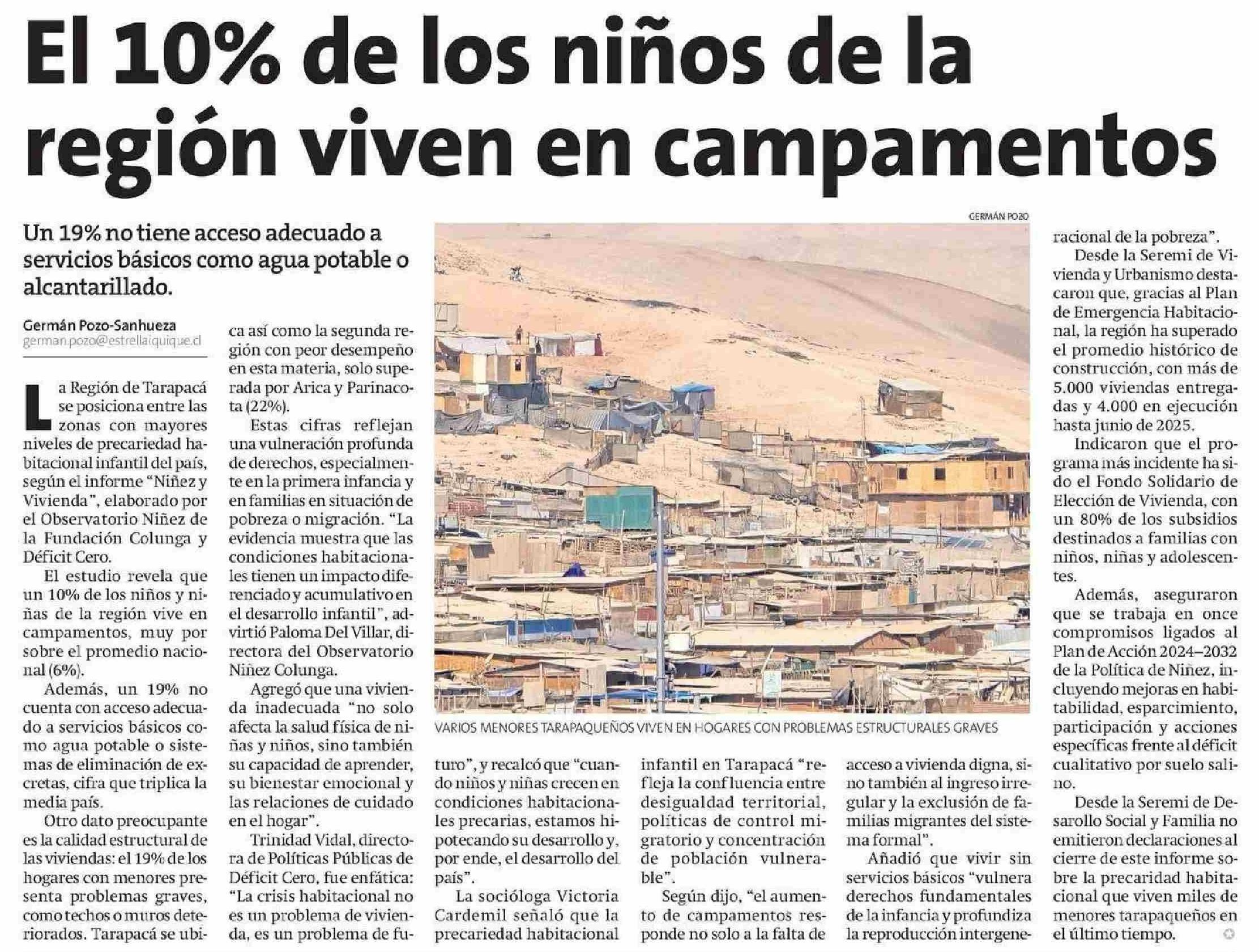 El 10% de los niños de la región viven en campamentos 24-07-2025 La Estrella de Iquique |