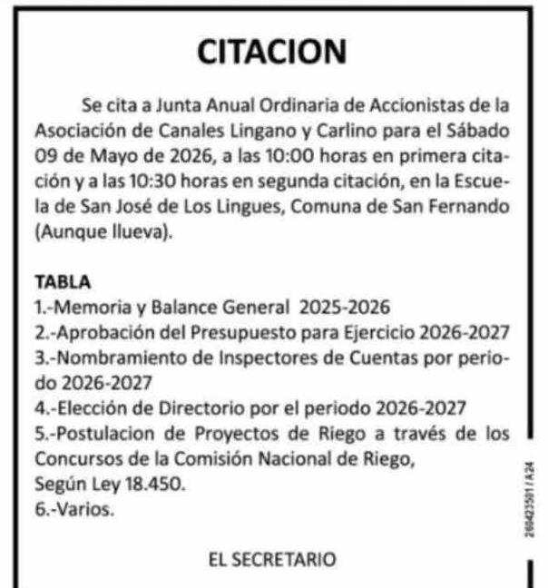 CITACION 24-04-2026 Diario VI Región |