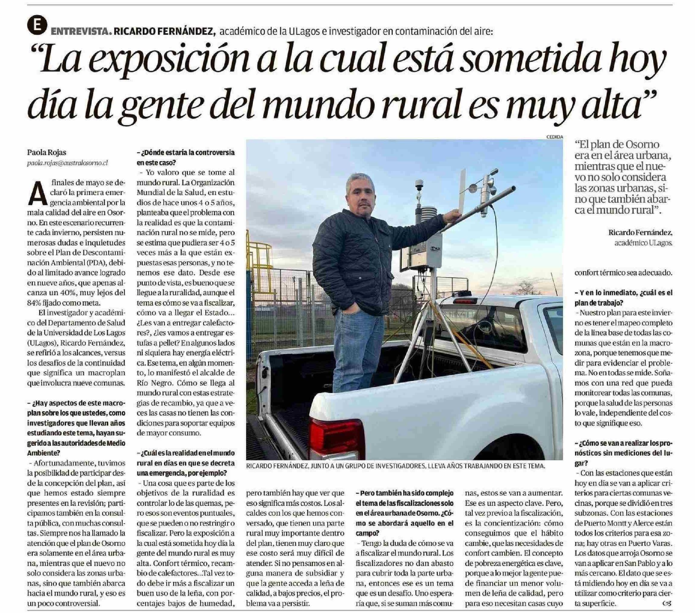 "La exposición a la cual está sometida hoy día la gente del mundo rural es muy alta" 05-06-2025 El Austral de Osorno |