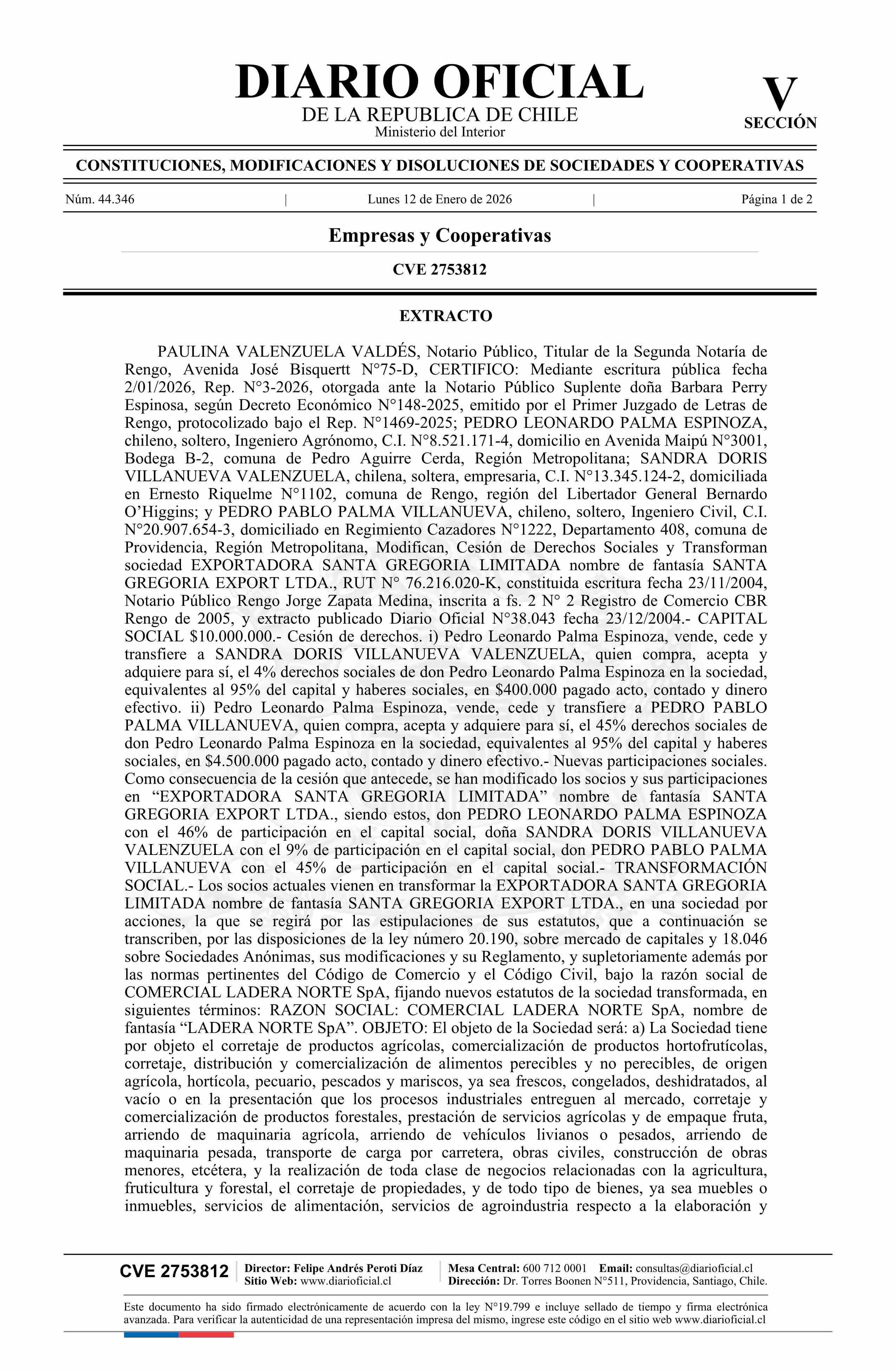 Título: COMERCIAL LADERA NORTE SpA 76.216.020-K*