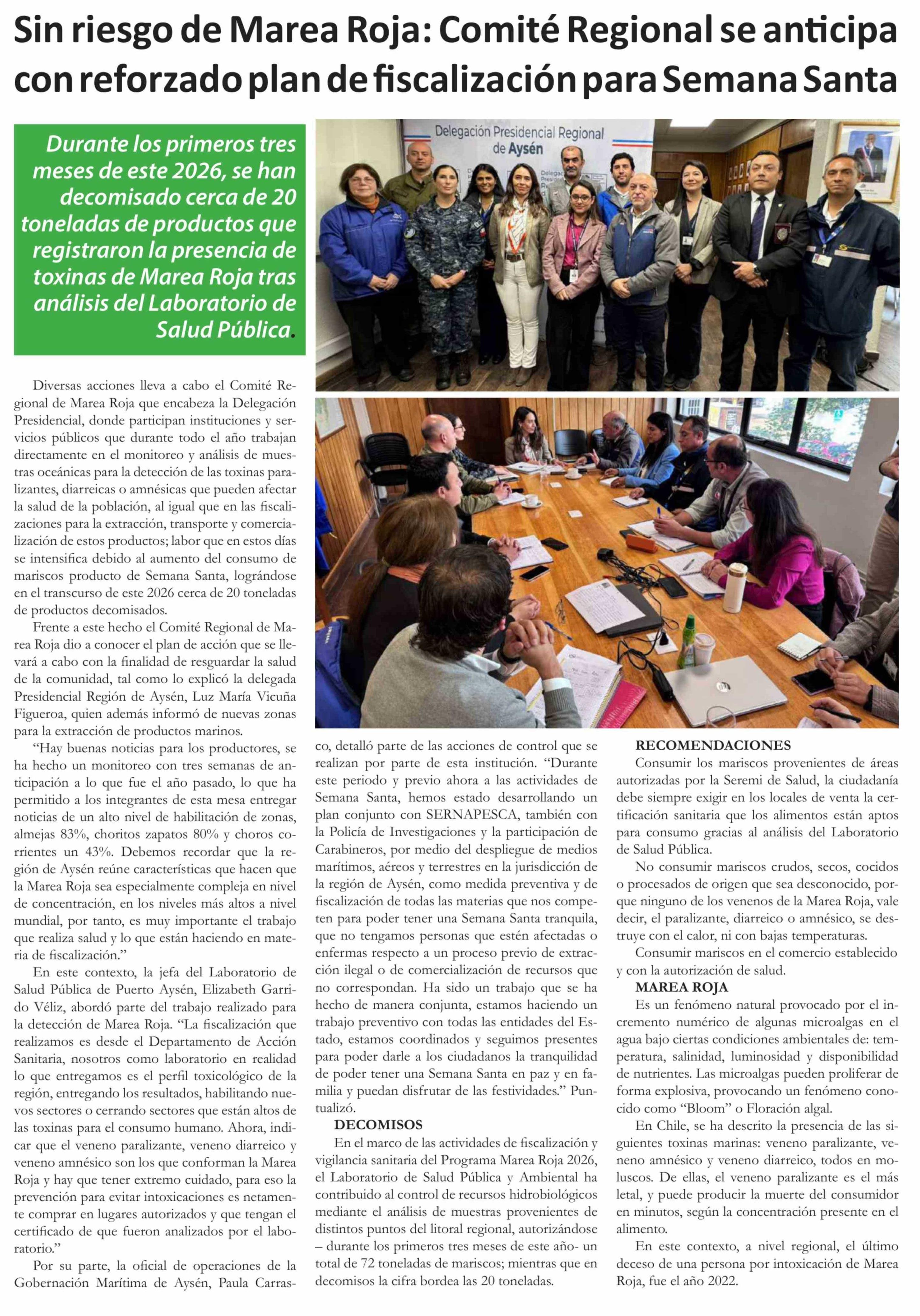 | Título: | Sin riesgo de Marea Roja: Comité Regional se anticipa con reforzado plan de fiscalización para Semana Santa |