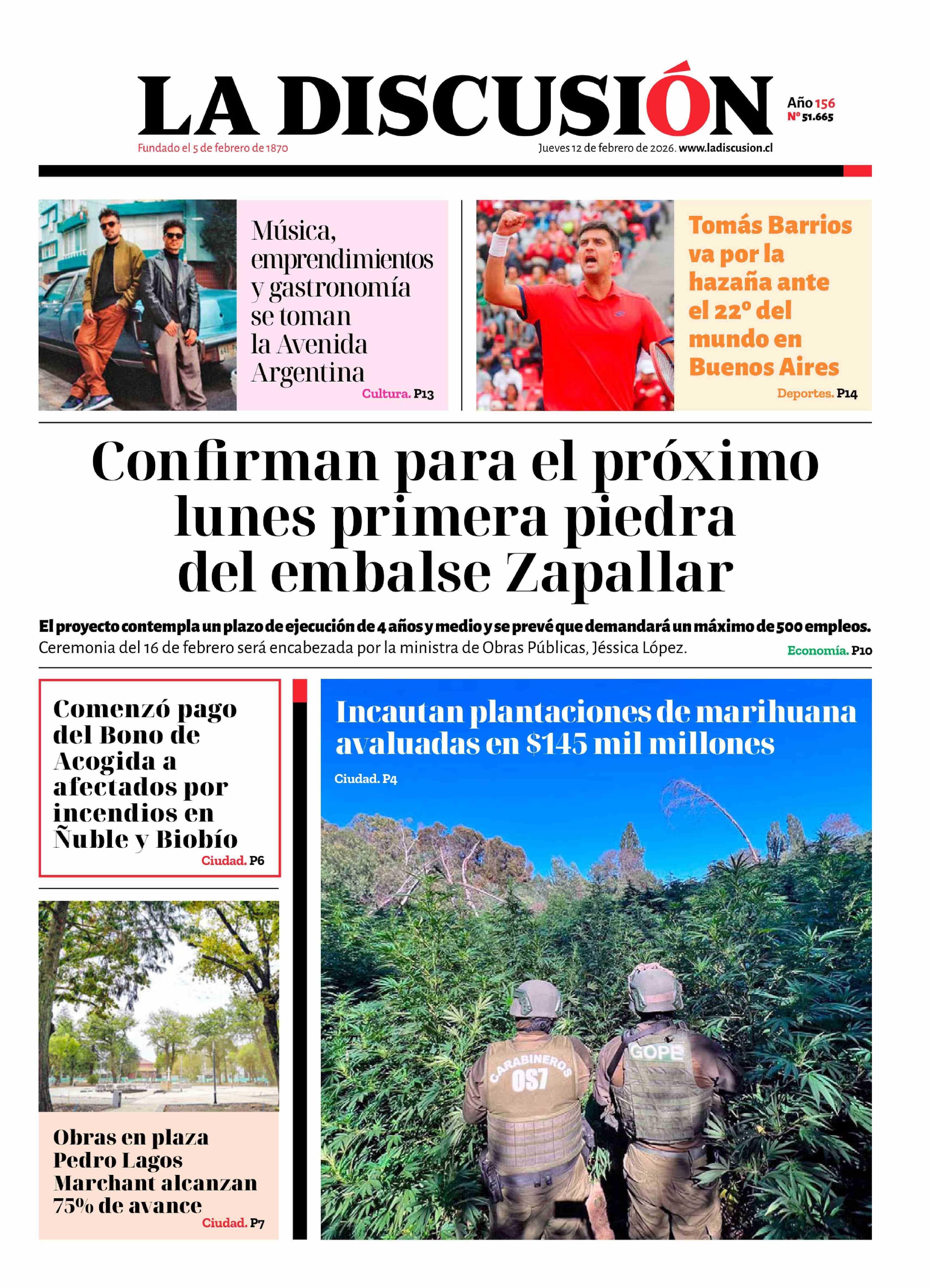 | Fecha: | 12-02-2026 | Sector: | Portada | Región: | Región del Ñuble |