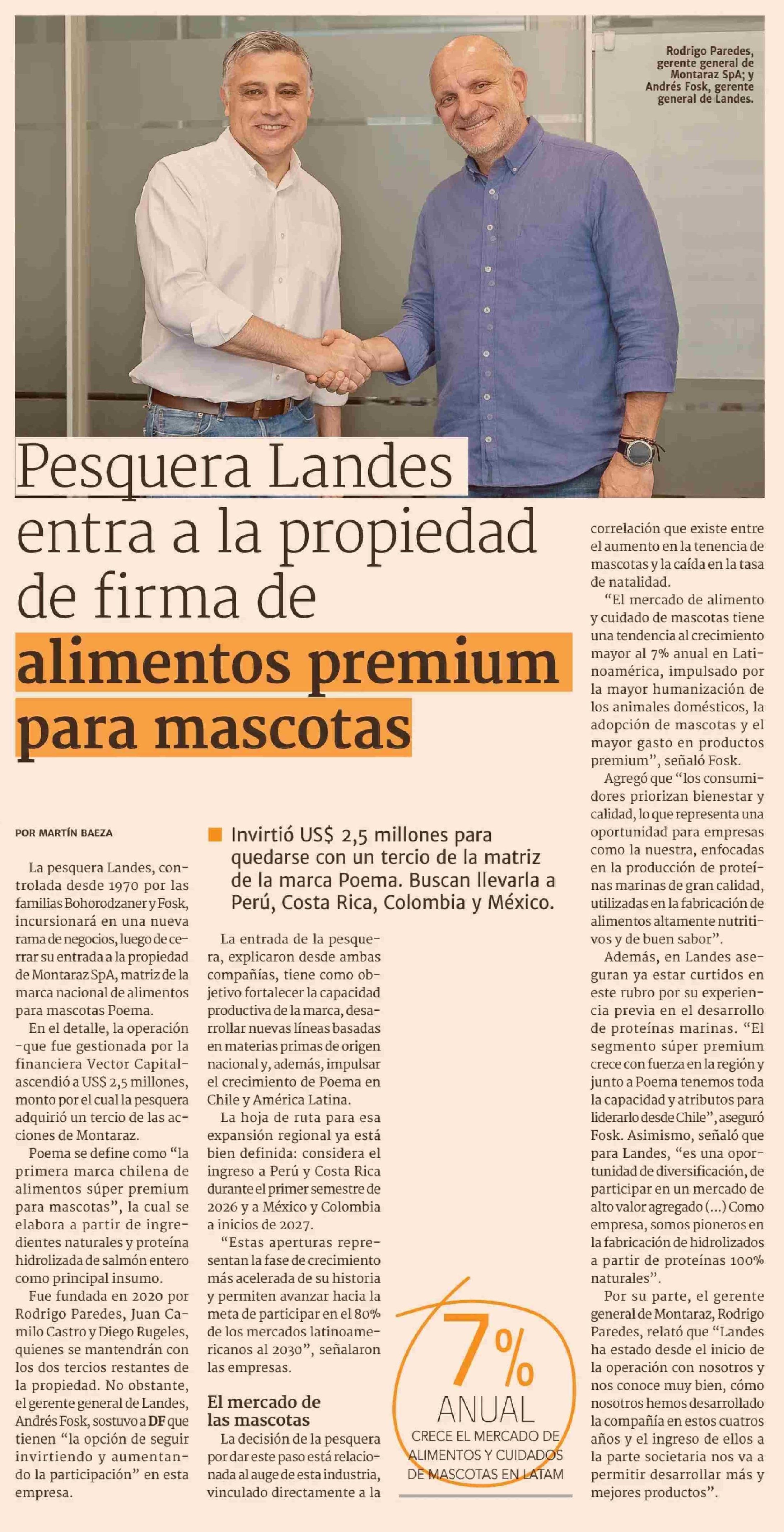 Título: Pesquera Landes entra a la propiedad de firma de alimentos premium para mascotas