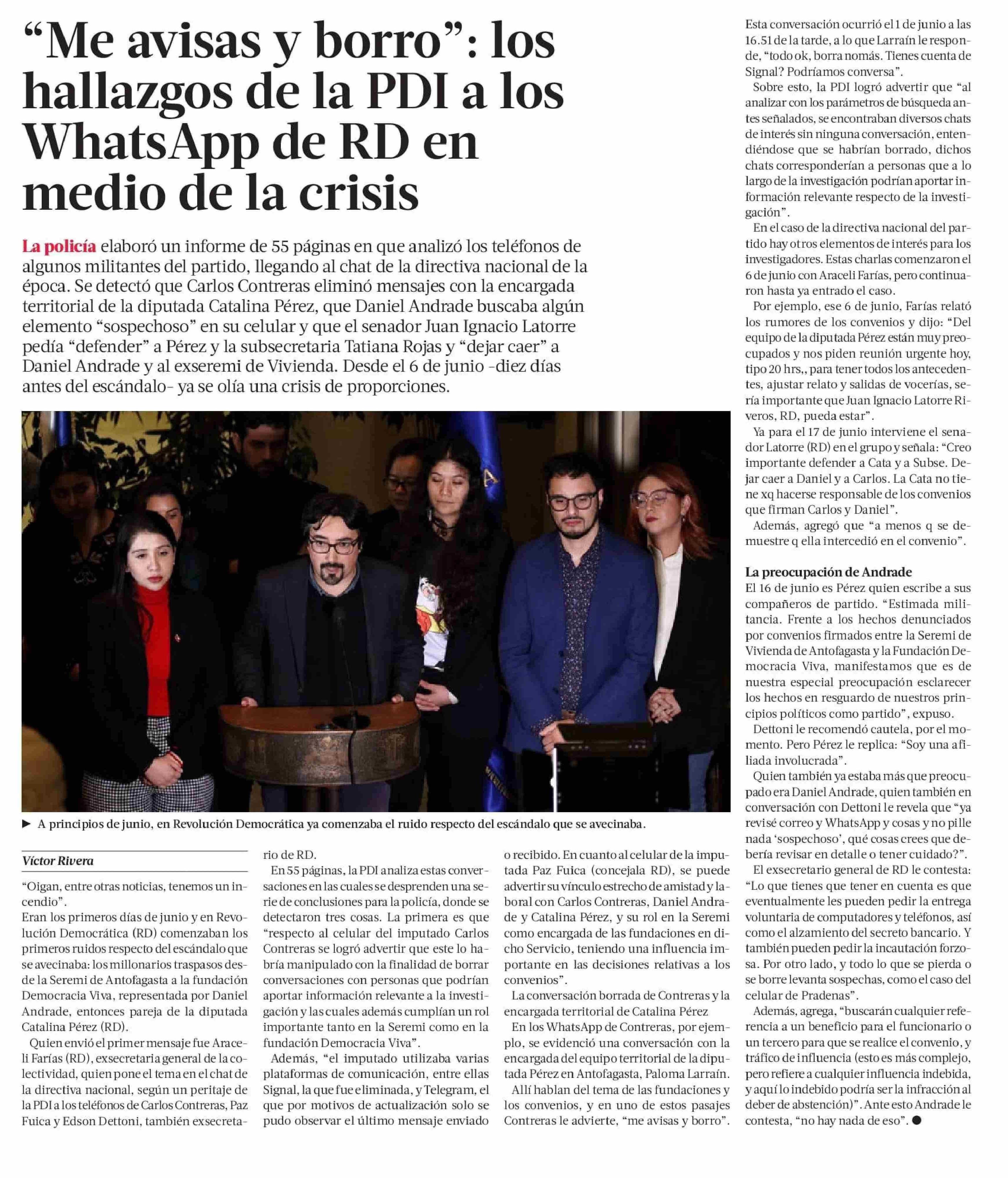 “Me avisas y borro”: los hallazgos de la PDI a los WhatsApp de RD en medio de la crisis 15-12-2023 La Tercera |